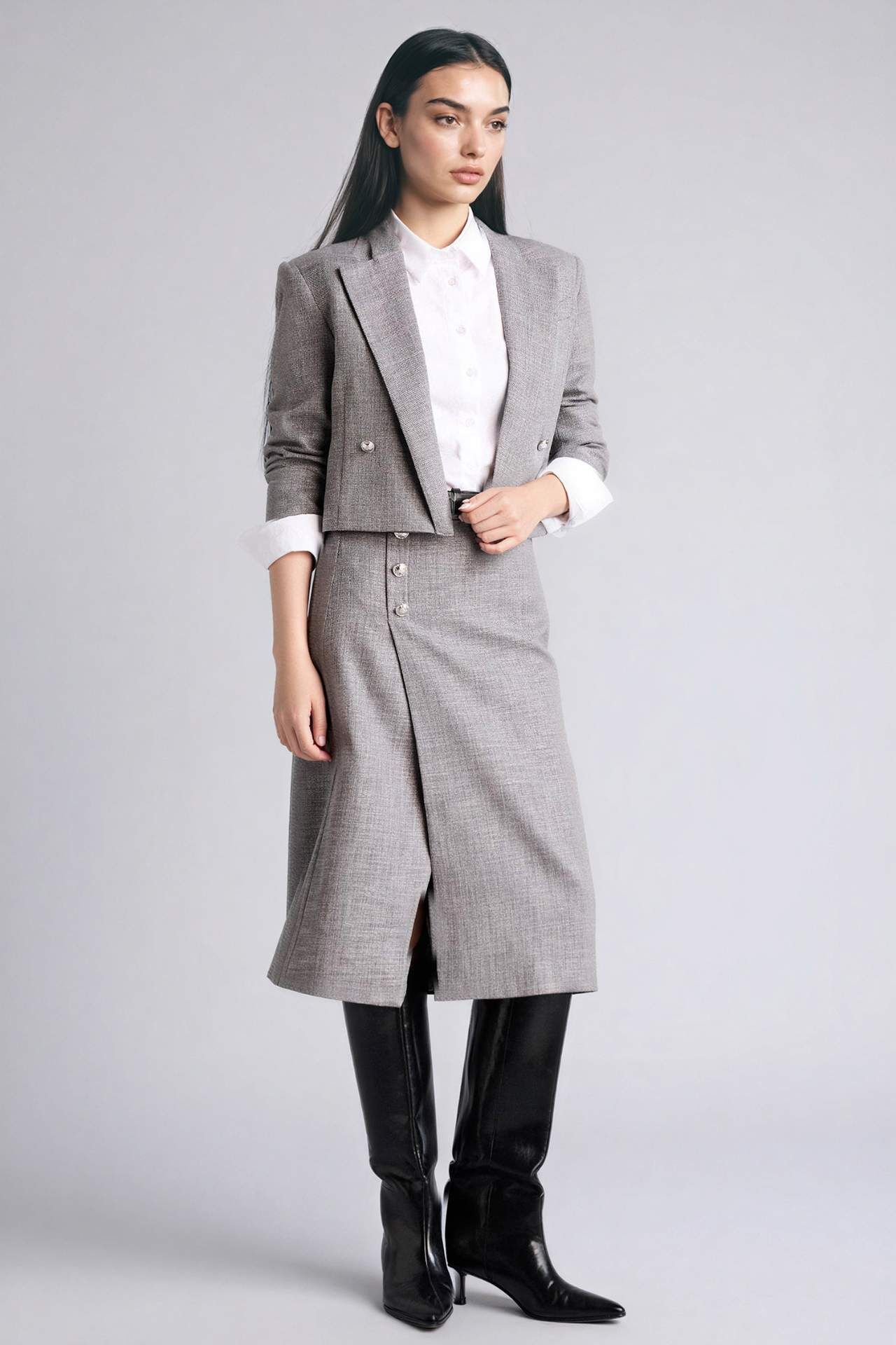 Poliester 100%,Elastan 1%,Viskoz 51%,Poliester 48% Manken Bedeni: Göğüs: 82 Boy: 1,76 Basen: 91 Bel: 62