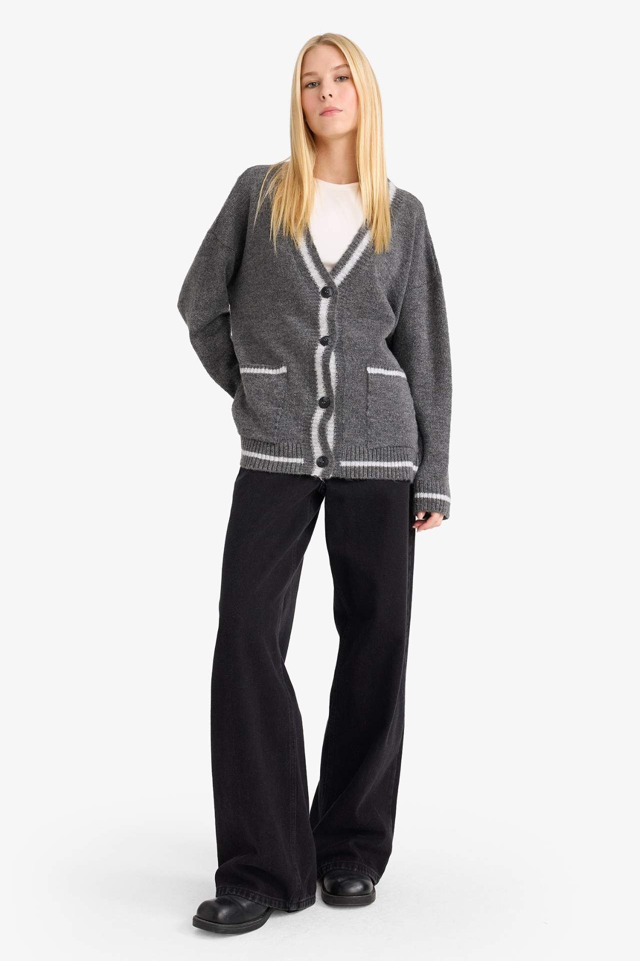 Okula Dönüş Coool Oversize Geniş Kalıp V Yaka Hırka