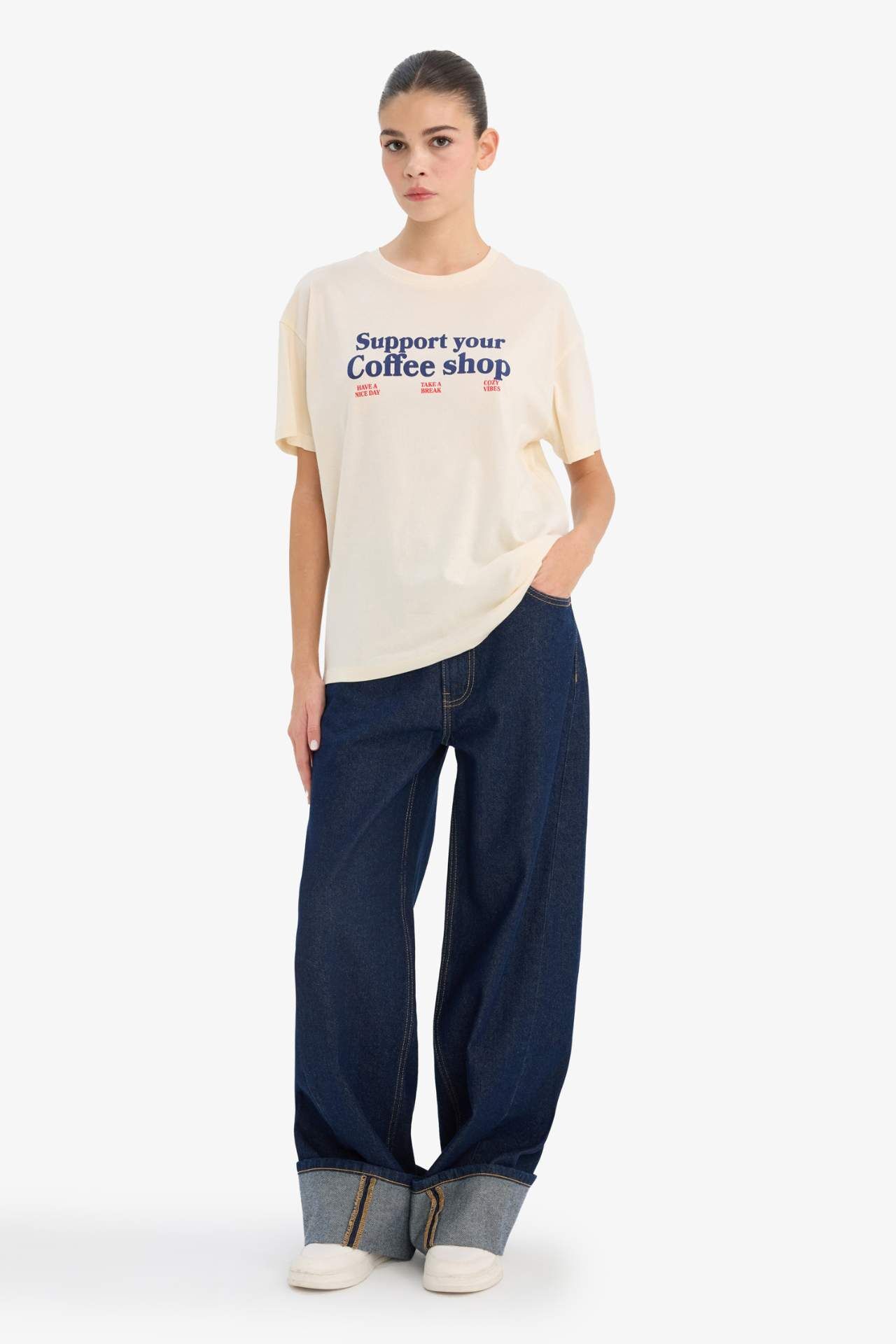 Overshırt Fıt Bisiklet Yaka Baskılı Kısa Kollu Tişört