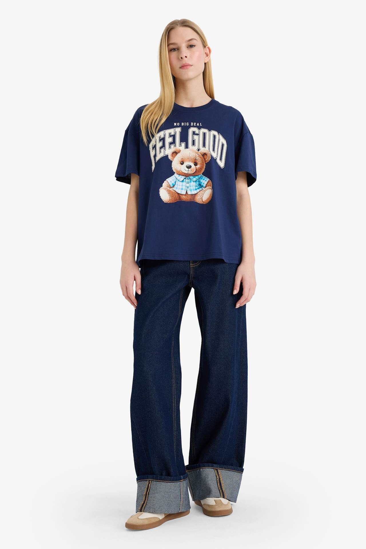 Oversize kesimi ve sevimli ayıcık baskısıyla öne çıkan tişört, rahat ve şık bir günlük stil sunar. Yumuşak ve esnek dokusu sayesinde gün boyu konforlu bir kullanım sağlar. Pamuk 100% Manken Bedeni: Göğüs: 0 Boy: 1,71 Basen: 0 Bel: 58