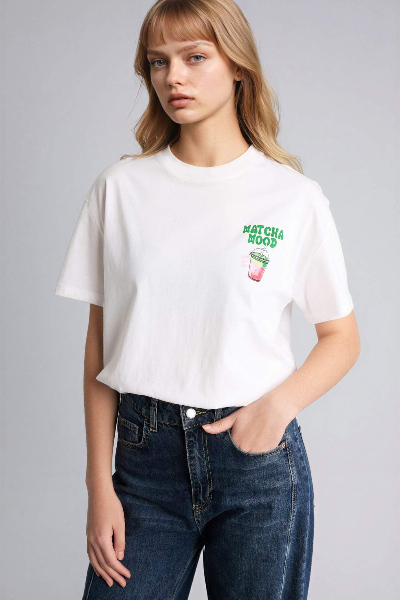 DeFacto Oversıze Bisiklet Yaka Baskılı Kısa Kollu Tişört