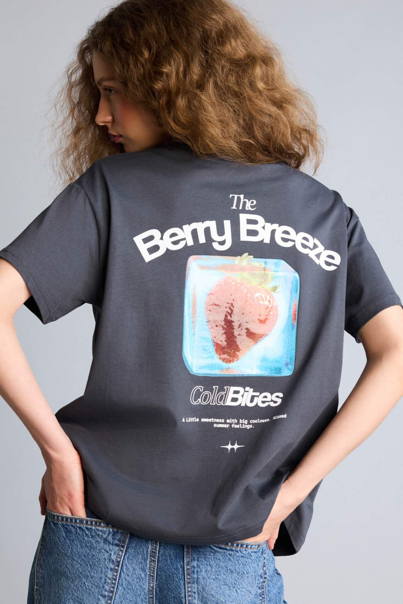 DeFacto Oversıze Bisiklet Yaka Baskılı Kısa Kollu Tişört