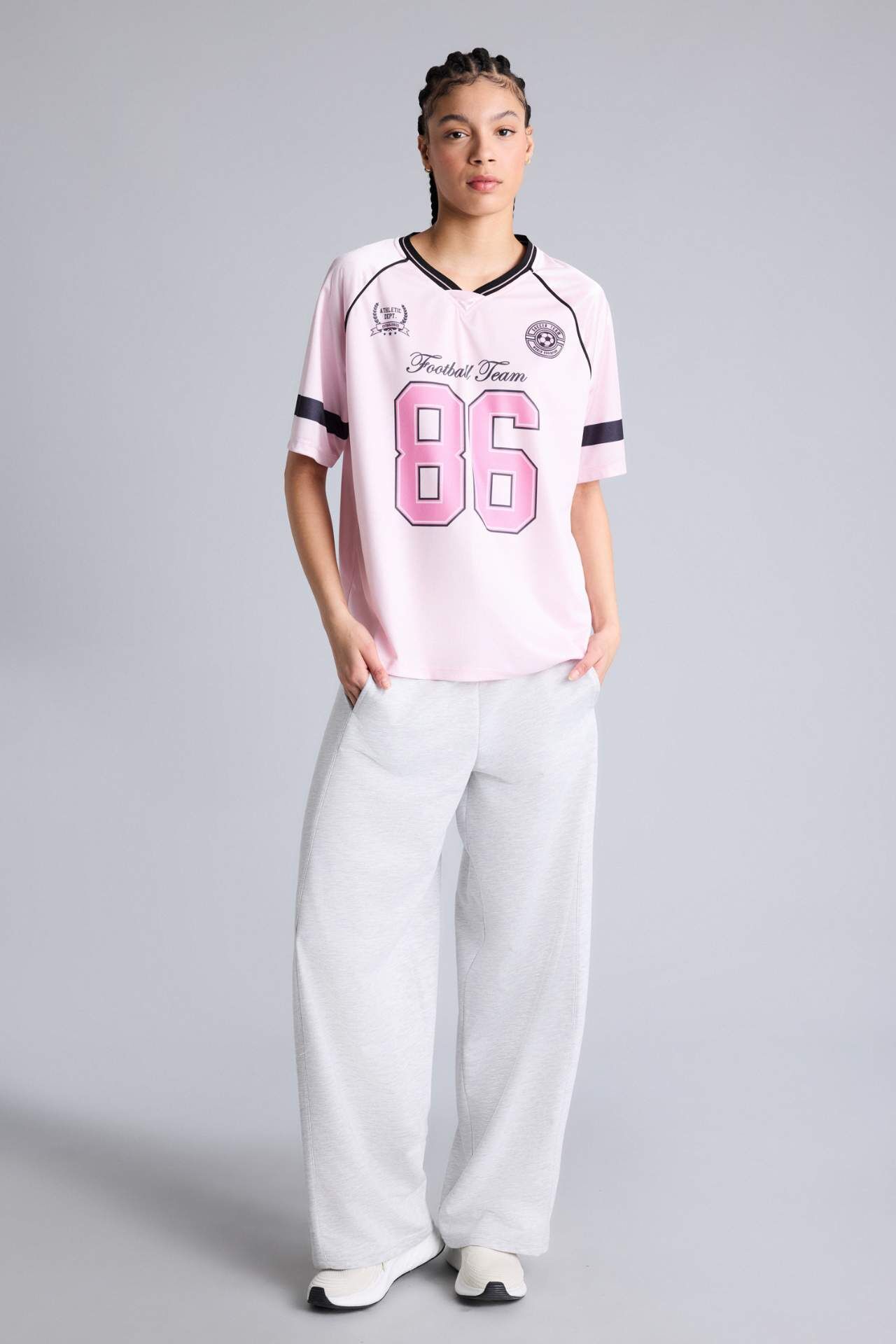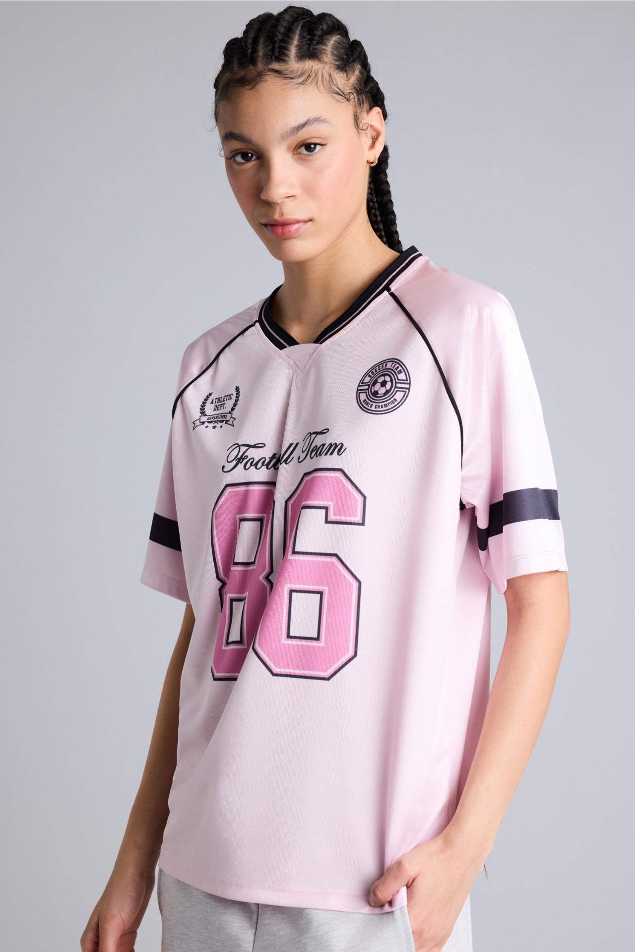 DeFacto Oversıze Bisiklet Yaka Dijital Baskılı Baskılı Sporcu Tül Kısa Kollu Tişört