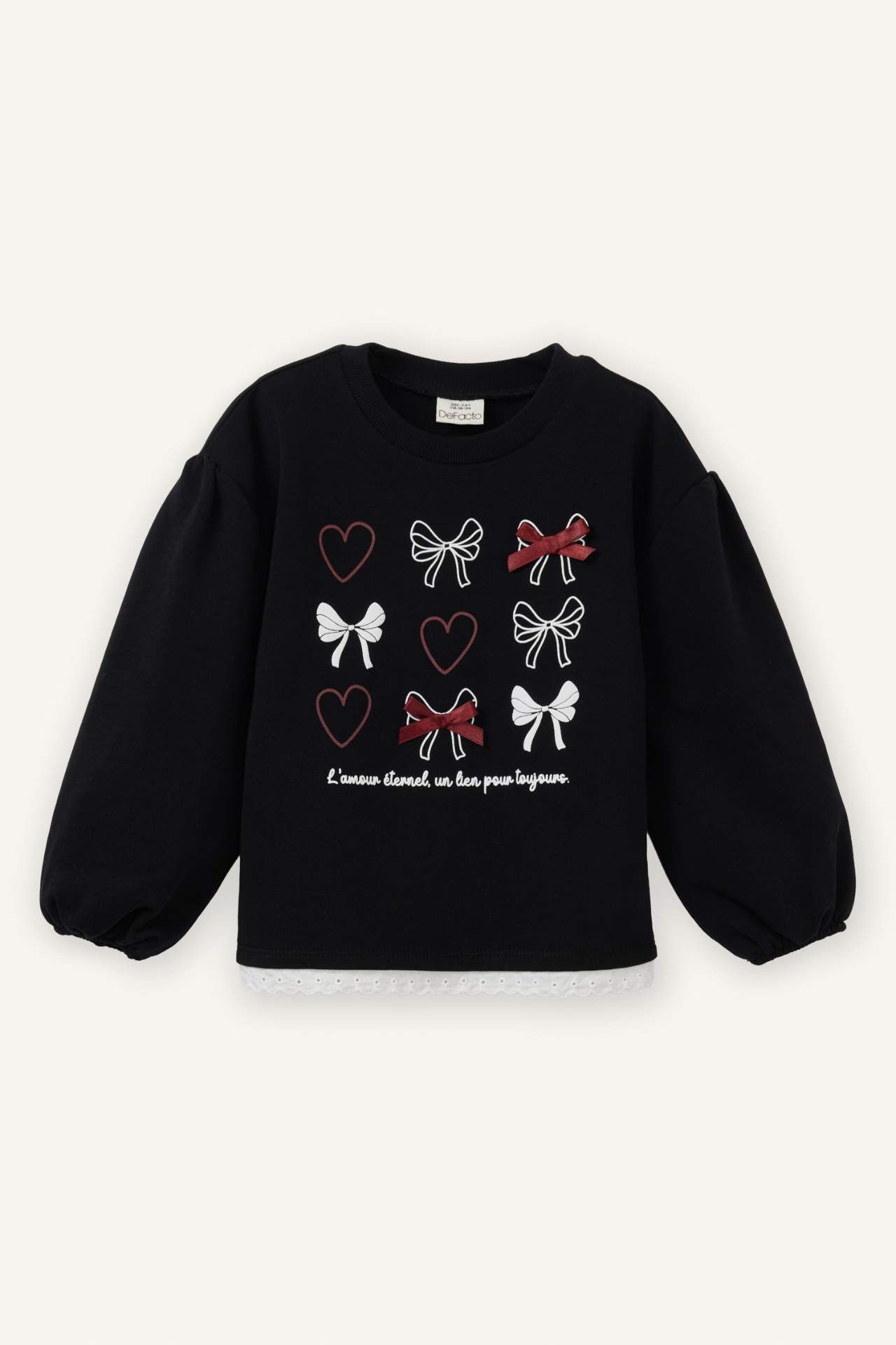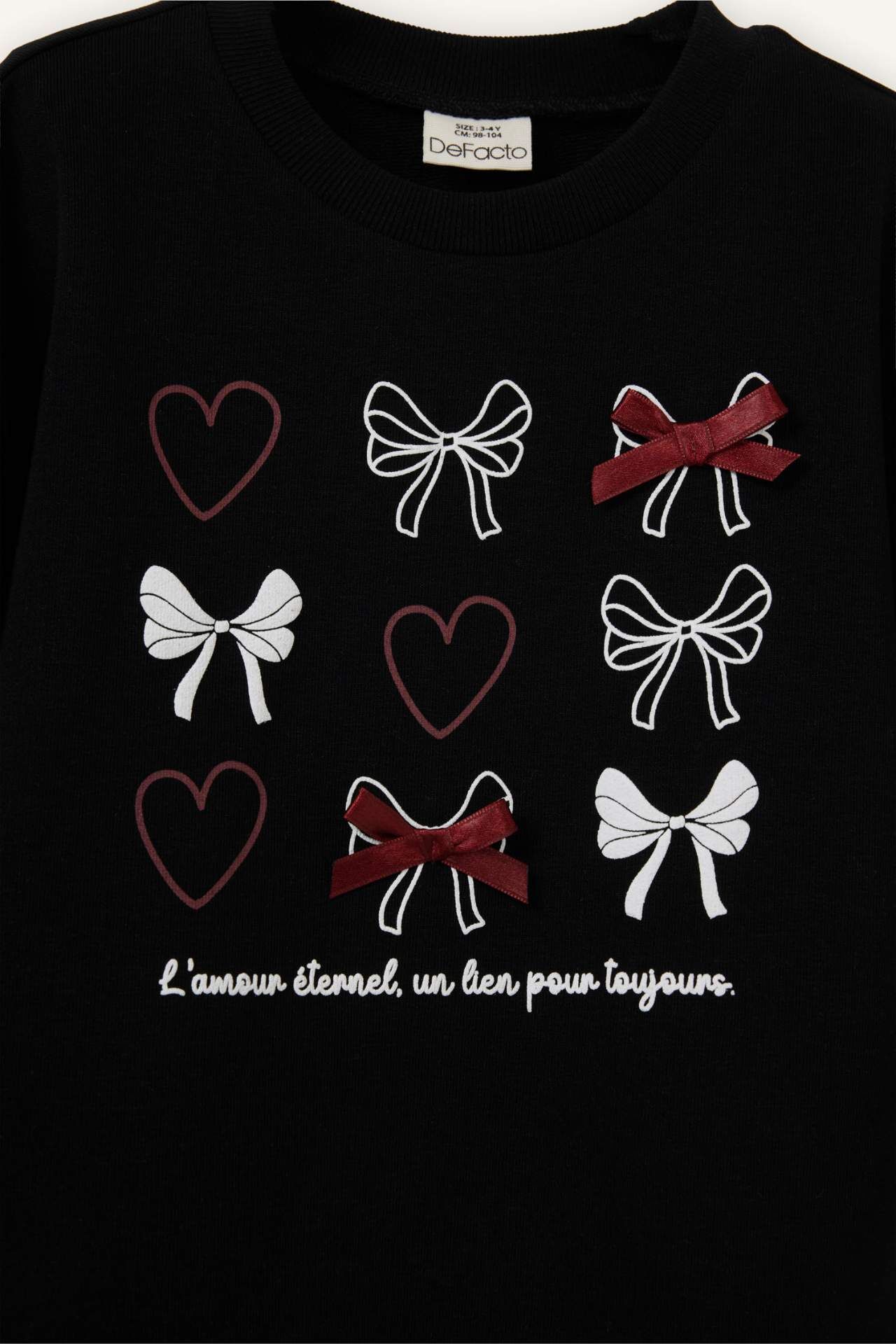 Sevimli kalp ve fiyonk desenleriyle minik kombinlerine tatlı bir dokunuş katar. Geniş kesimi ve yumuşak kumaşı sayesinde rahat bir kullanım sunar. Pamuk 71%,Poliester 29%