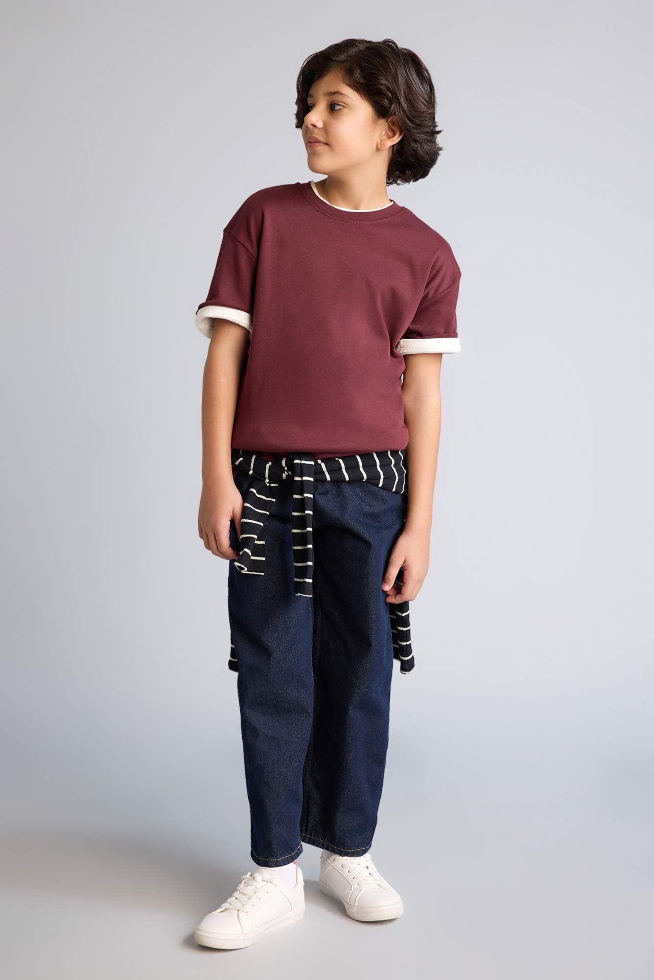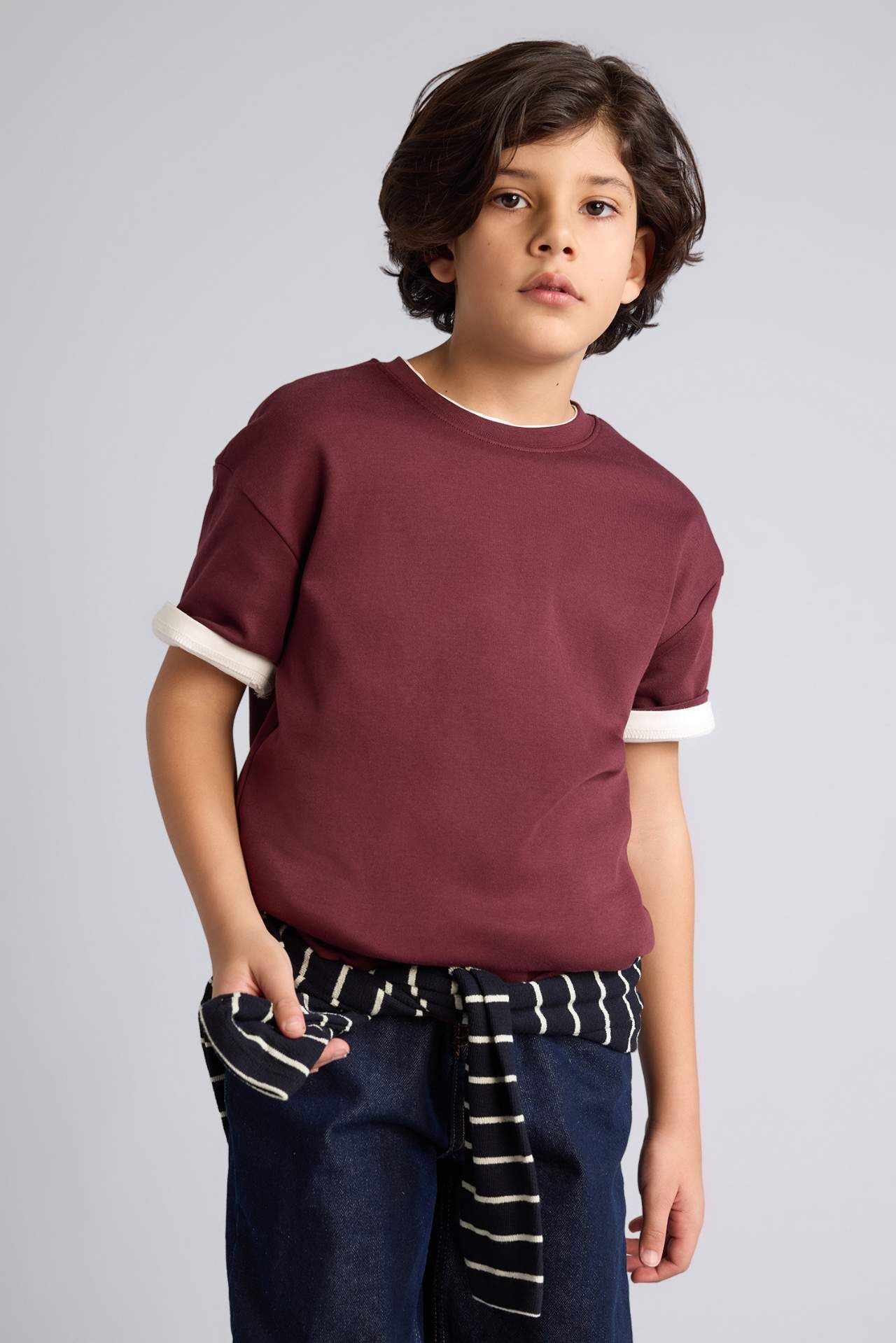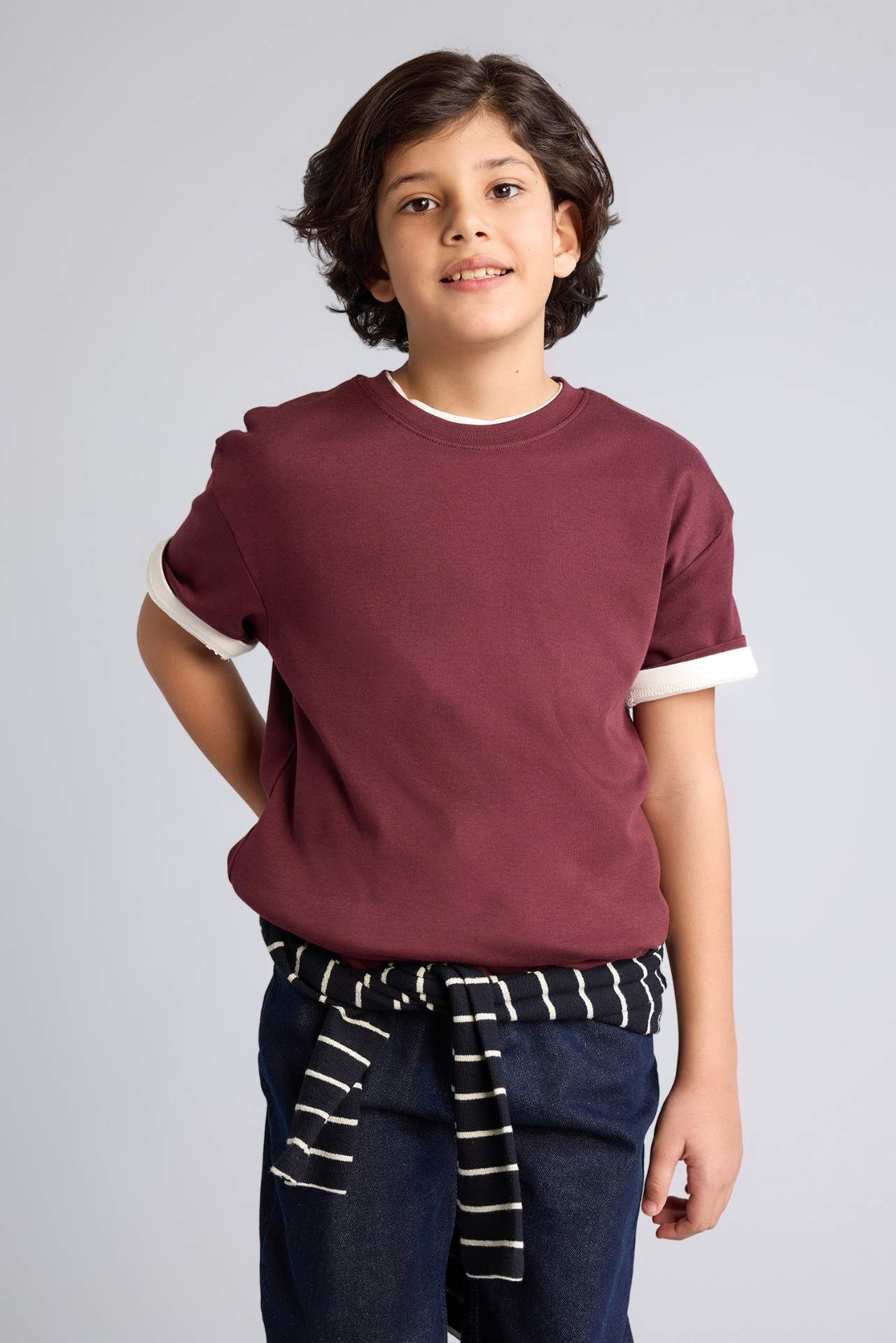 DeFacto Oversıze Bisiklet Yaka Kısa Kollu Tişört Erkek Çocuk