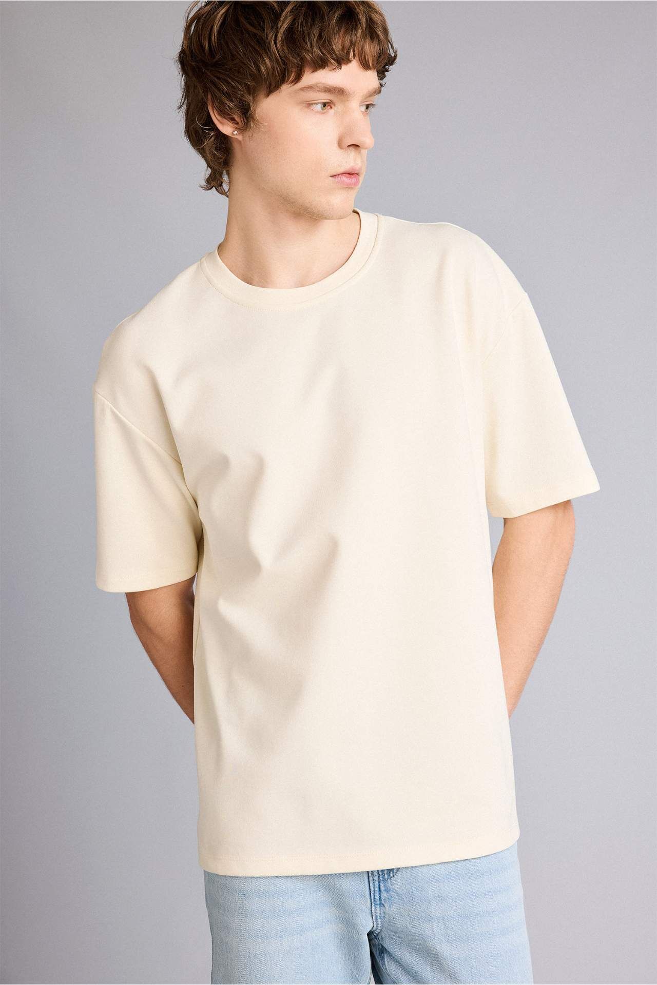 Oversıze Bisiklet Yaka Kısa Kollu Tişört