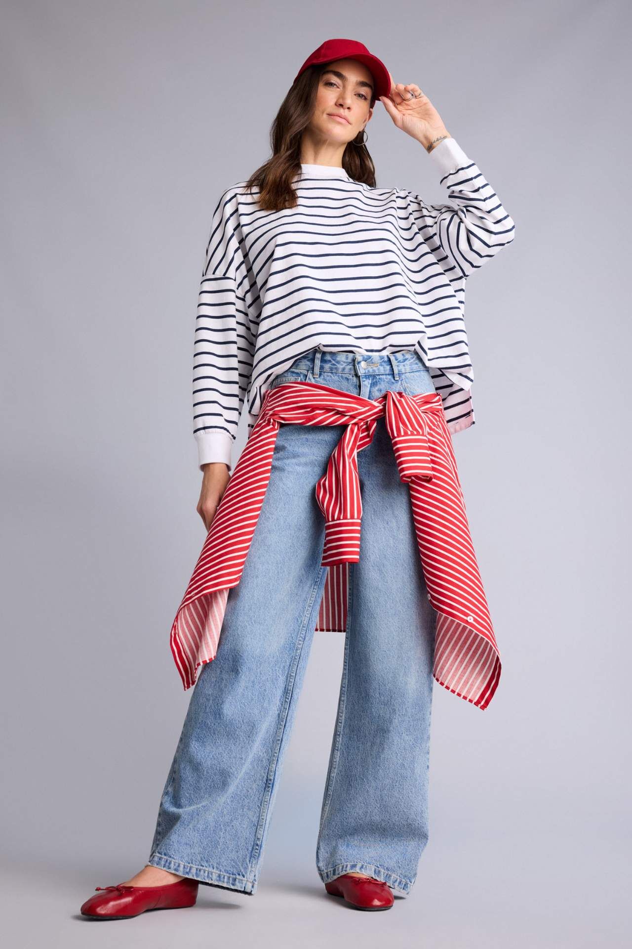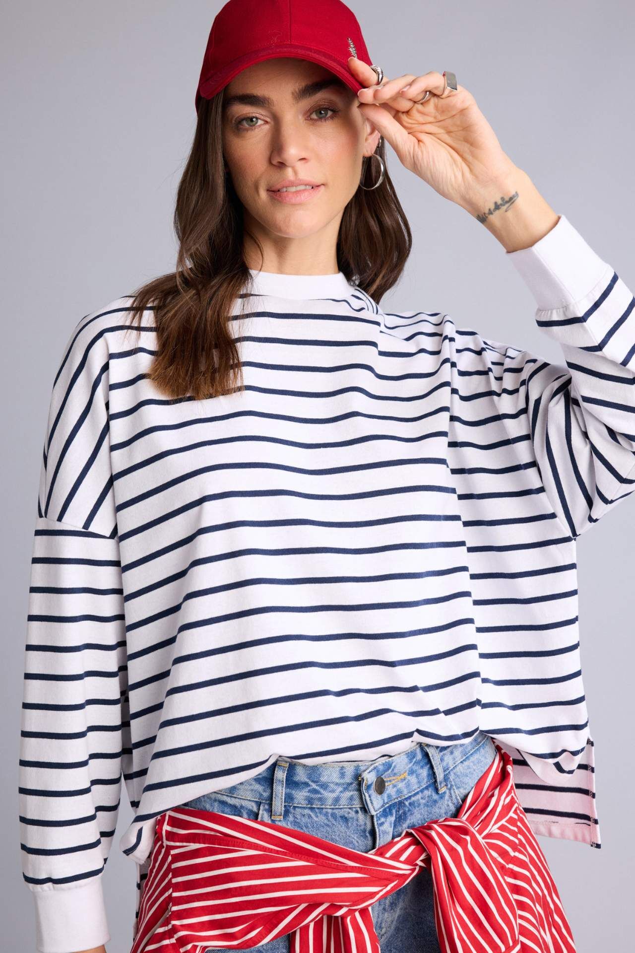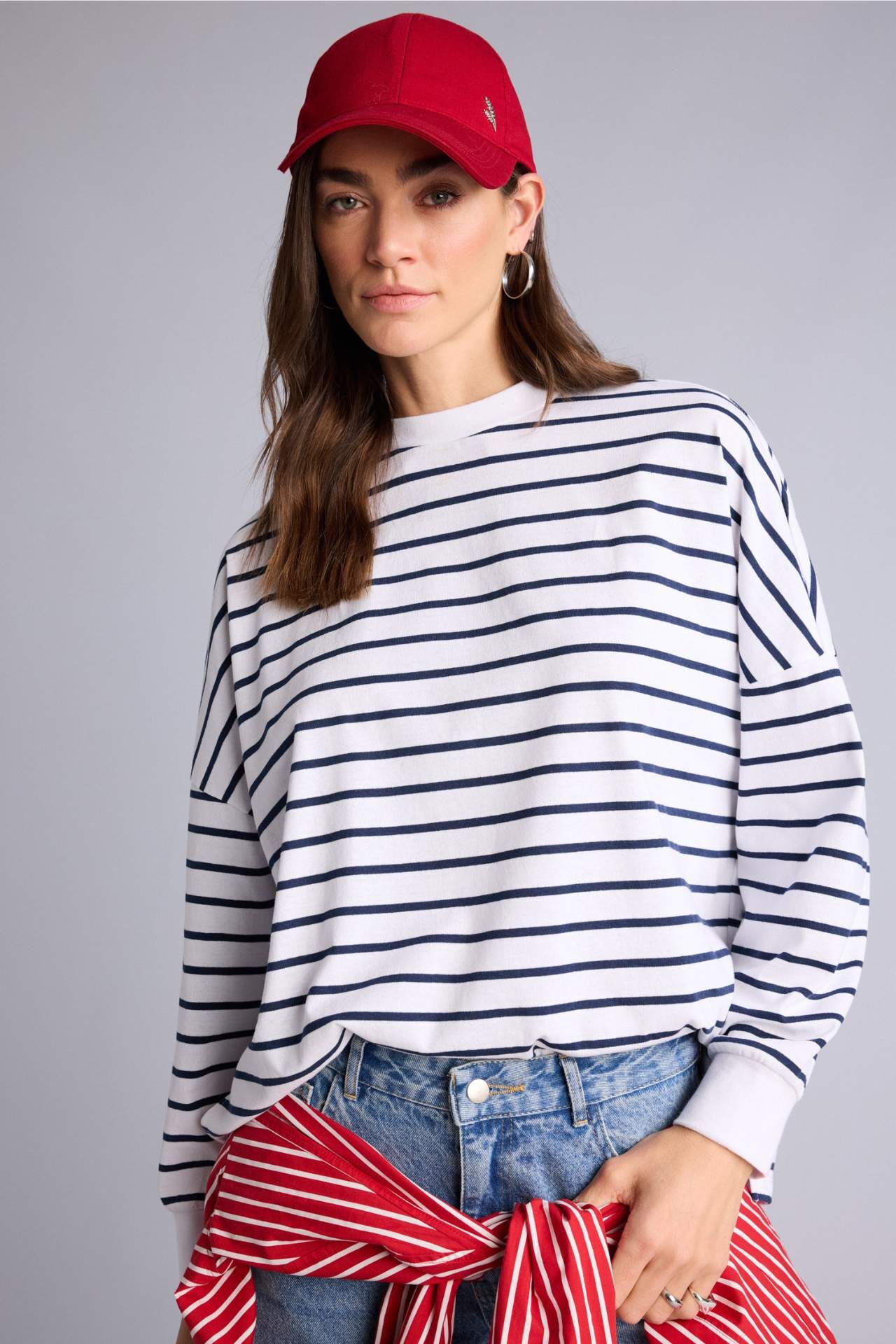 Oversize Pamuklu Çizgili Tişört, rahat kalıbı ve yumuşak pamuklu dokusuyla gün boyu konfor sunar. Çizgili tasarımıyla modern ve dinamik bir stil oluşturur, günlük kombinler için ideal bir parçadır. Pamuk 52%,Viskoz 5%,Poliester 43% Manken Bedeni: Göğüs: 89 Boy: 1,78 Basen: 92 Bel: 63