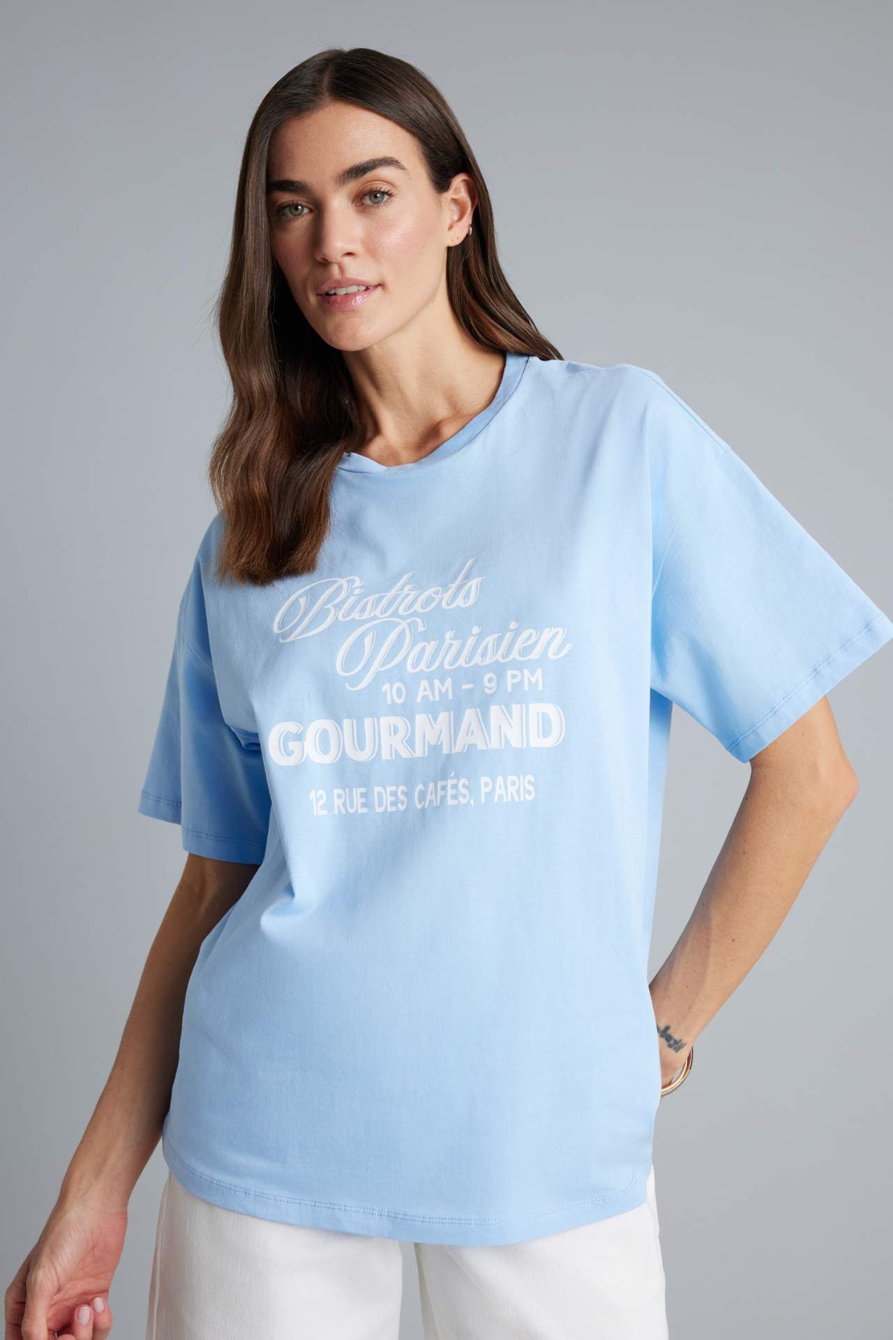 DeFacto Oversıze Bisiklet Yaka Slogan Baskılı Kısa Kollu Tişört