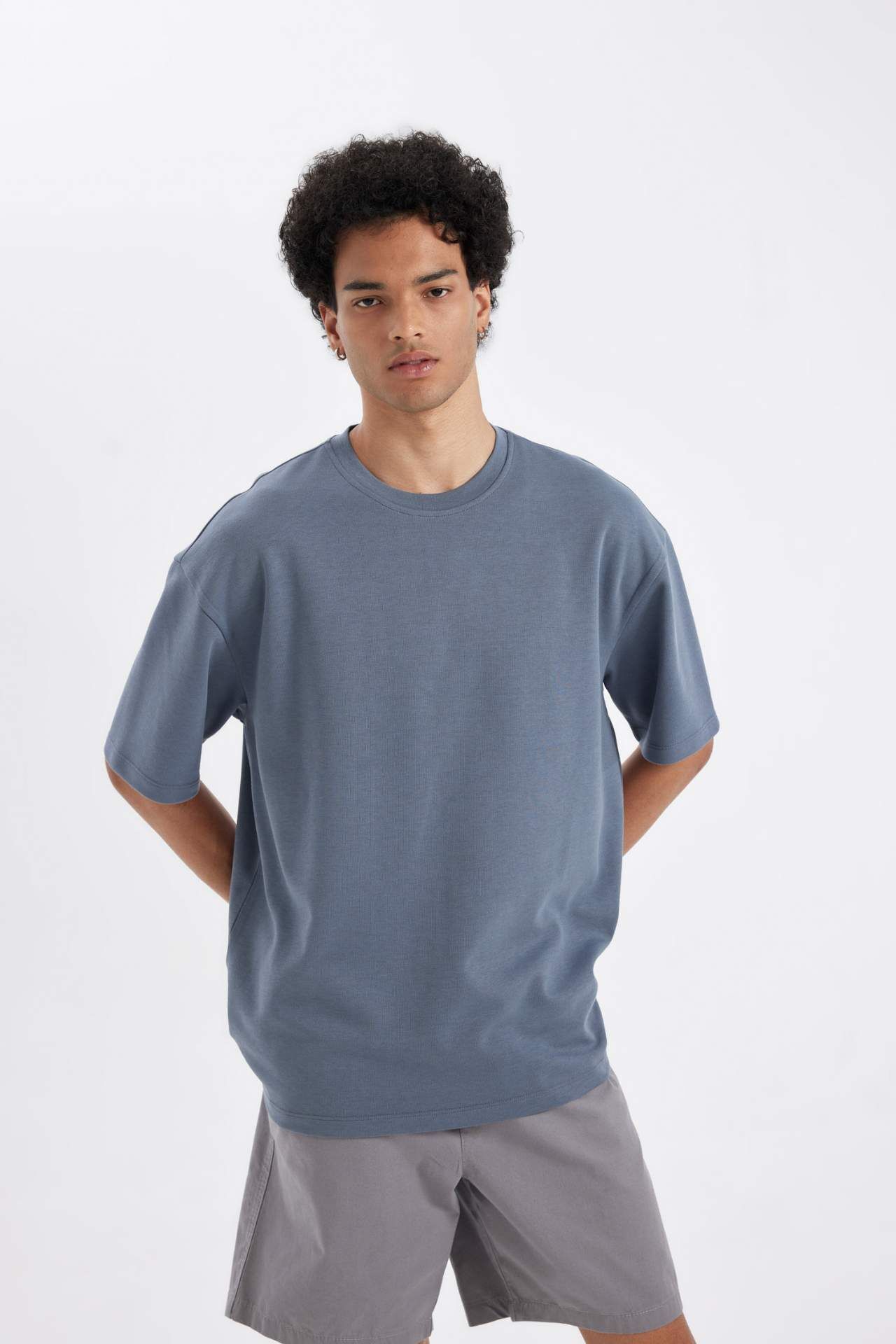DeFactoFit Oversize Fit Bisiklet Yaka Ağır Kumaş Kısa Kollu Tişört X3926AZ24AUGR504