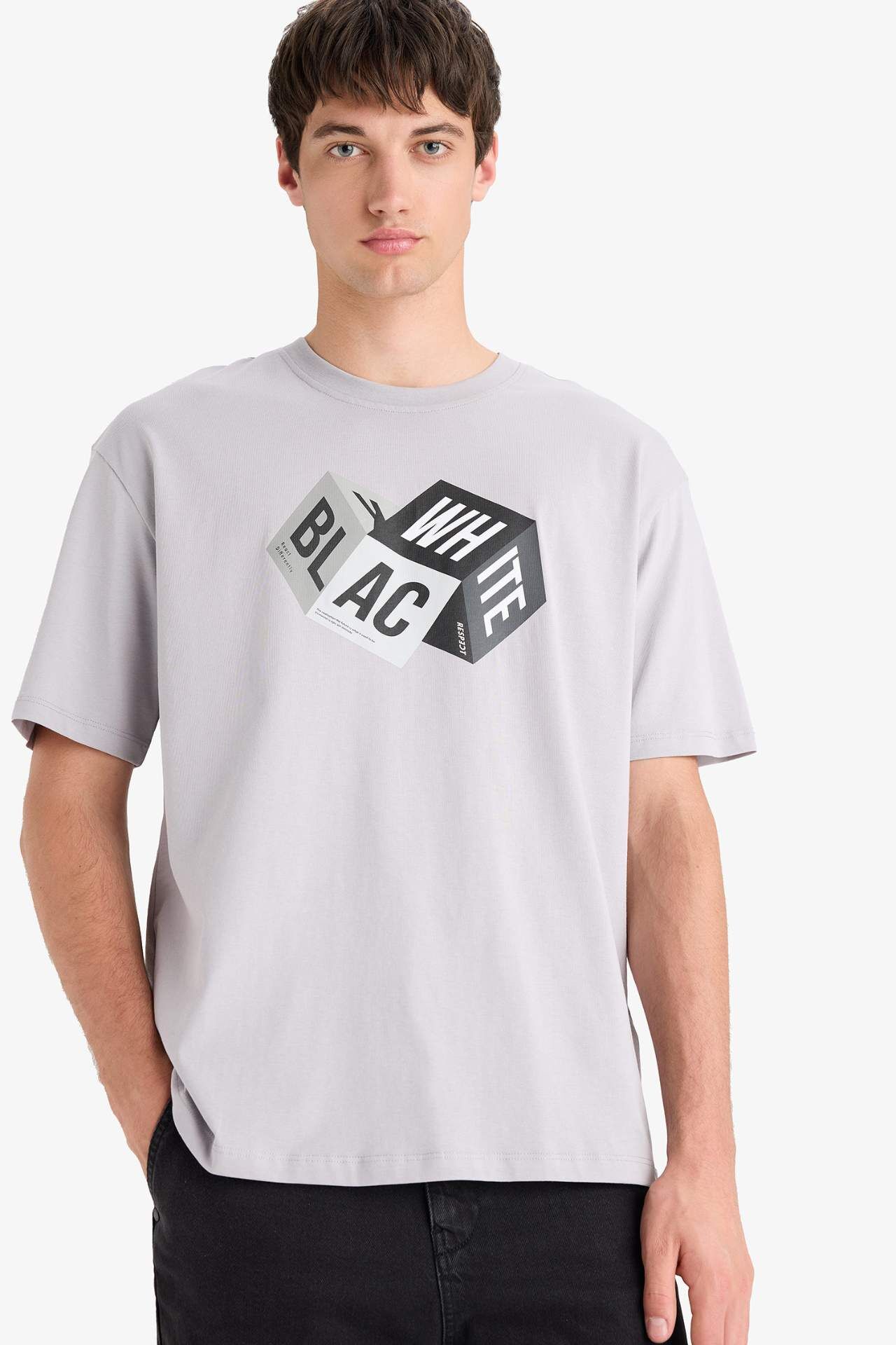 DeFacto Oversize Fit Bisiklet Yaka Baskılı Kısa Kollu %100 Pamuk Tişört S9343AZ25SMGR247