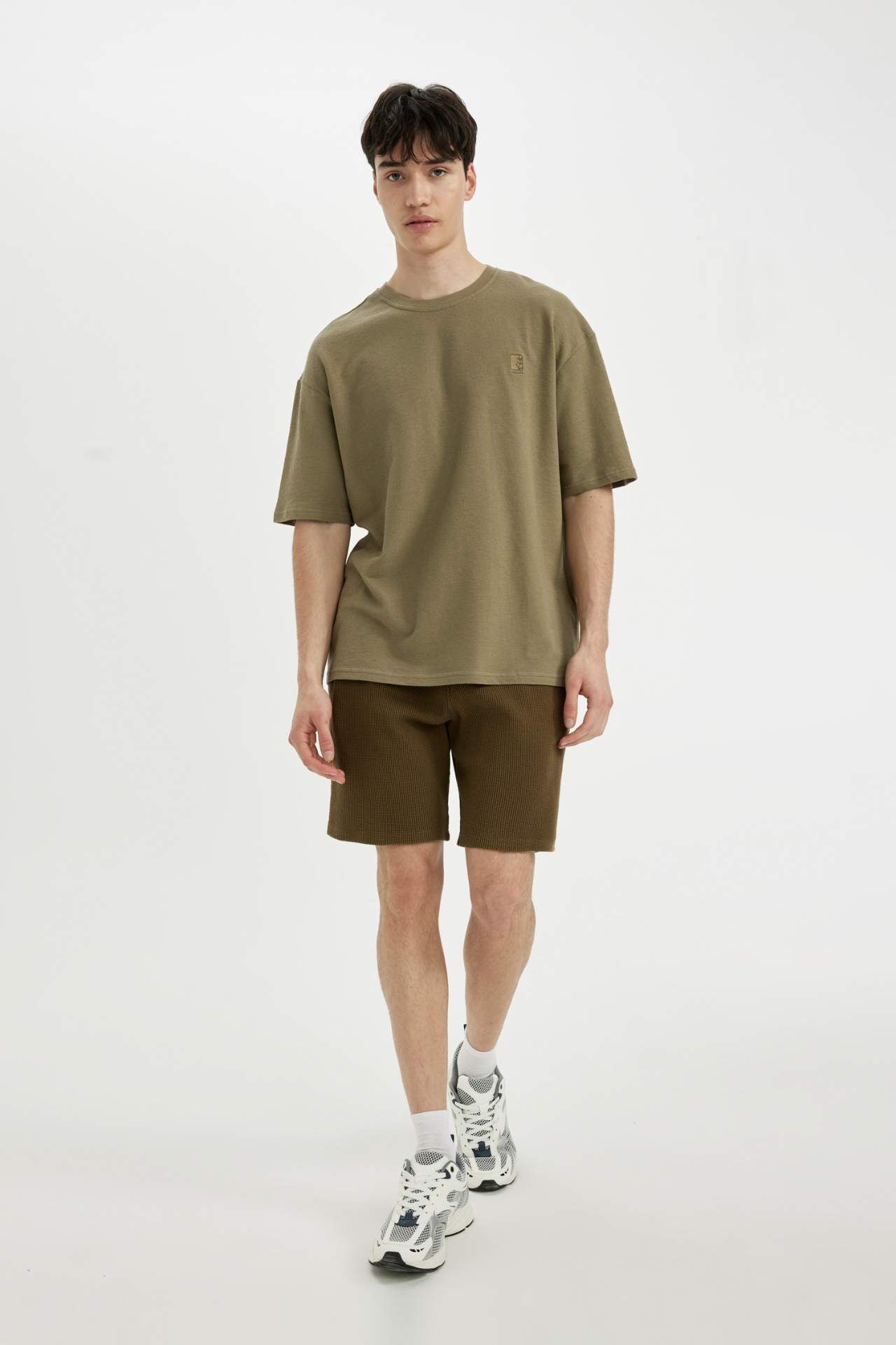 DeFactoFit Oversize Fit Bisiklet Yaka Baskılı Kısa Kollu Tişört C1866AX24SMKH436