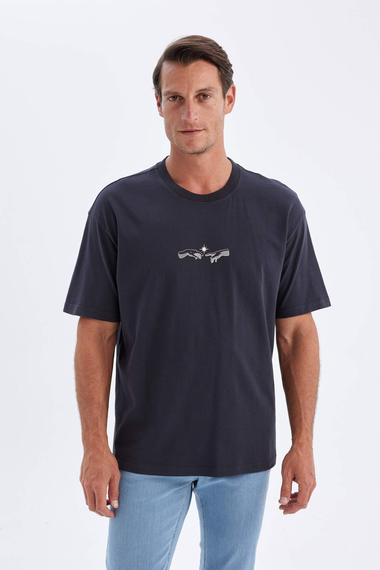 DeFacto DeFactoFit Oversize Fit Bisiklet Yaka Baskılı Kısa Kollu Tişört C7165AX24SMAR138