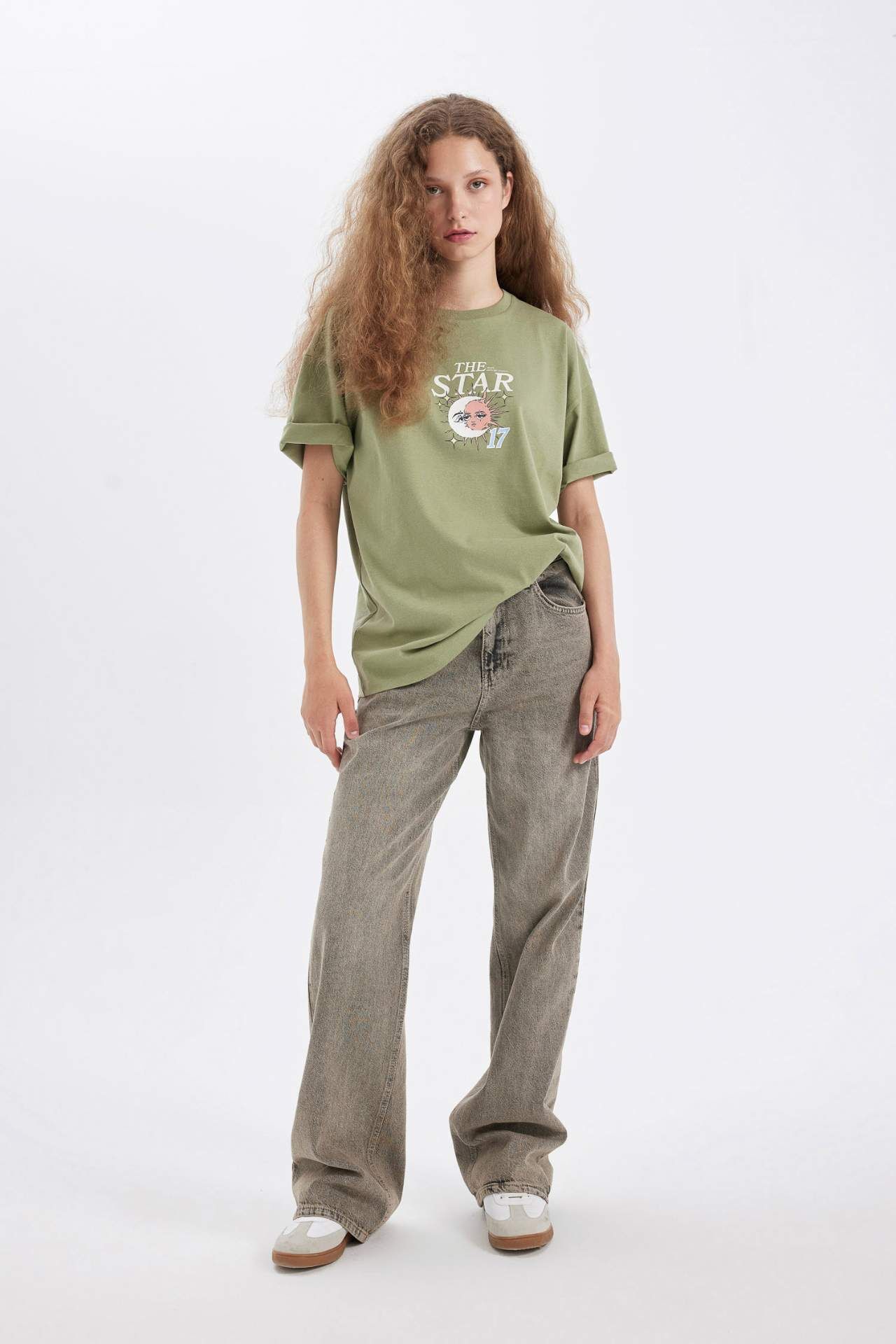 Geniş kesimli Bisiklet Yaka Baskılı Kısa Kollu Tişört, rahat ve şık bir seçenek sunar. Kaliteli kumaşı ve modern tasarımıyla öne çıkar. Gardırobunuzun favori parçası olmaya aday. Pamuk 100%,Pamuk 100%,Pamuk 100% Manken Bedeni: Göğüs: 78 Boy: 1,74 Basen: 89 Bel: 60