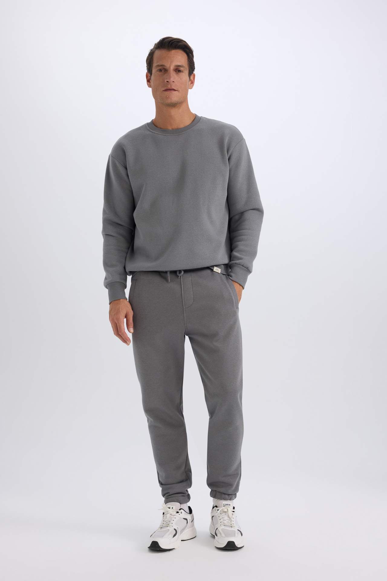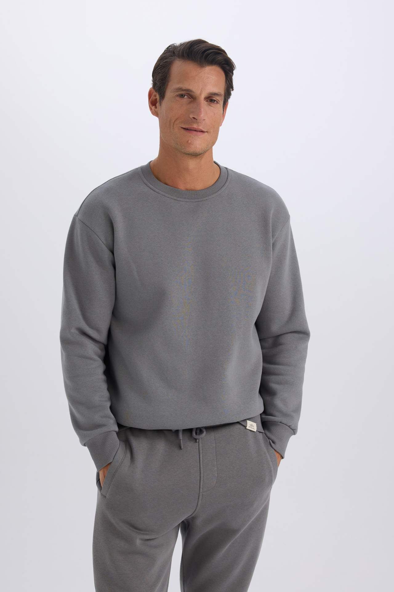 DeFacto Oversize Fit Bisiklet Yaka Kalın Basic Sweatshirt Kumaşı Basic Sweatshirt