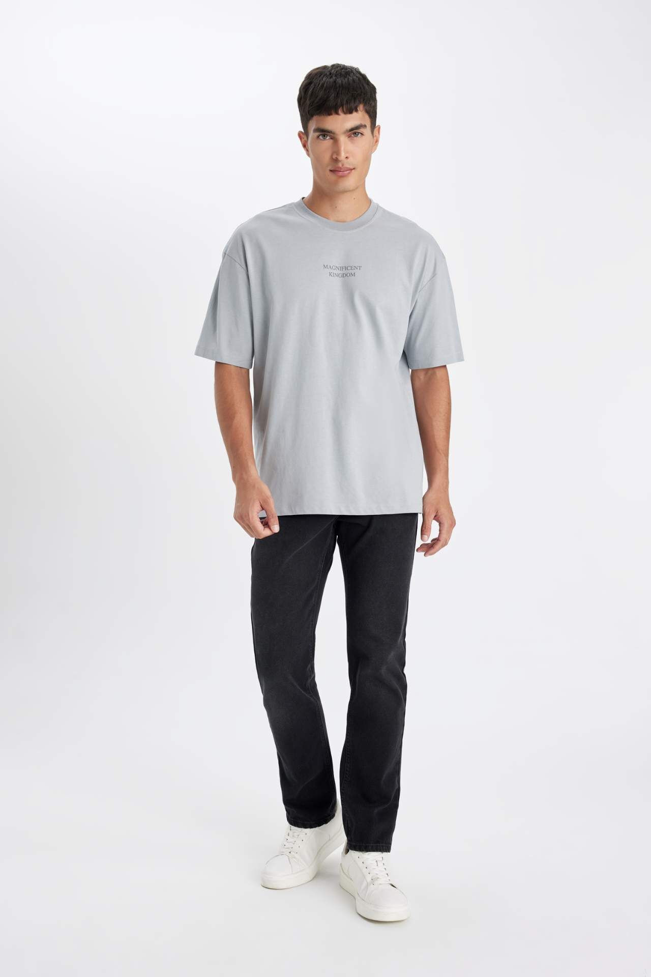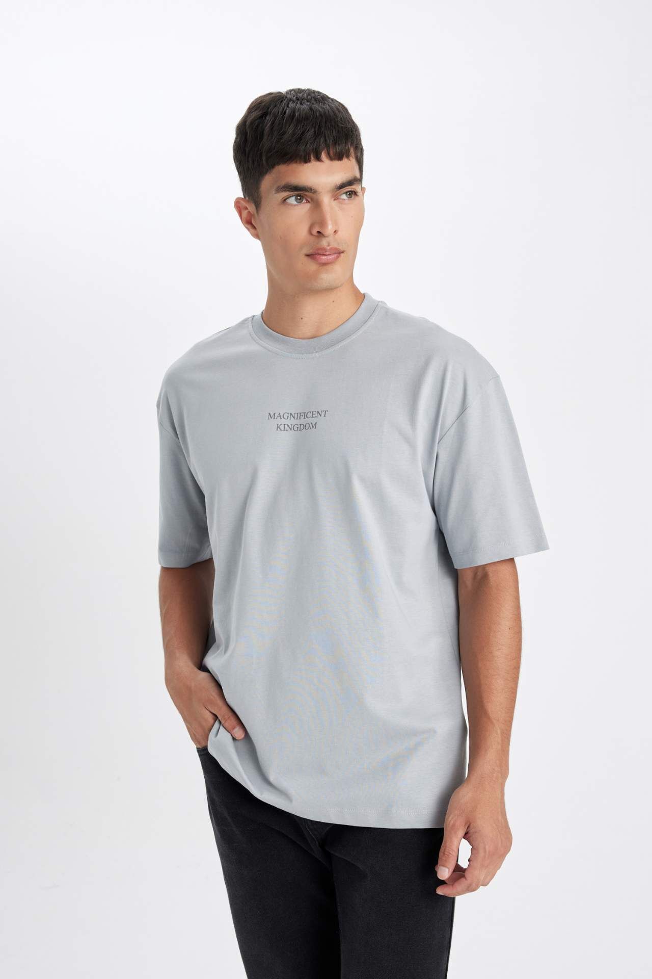 DeFactoFit Oversize Fit Bisiklet Yaka Sırt Baskılı Kısa Kollu Tişört D4909AX24AUGR130