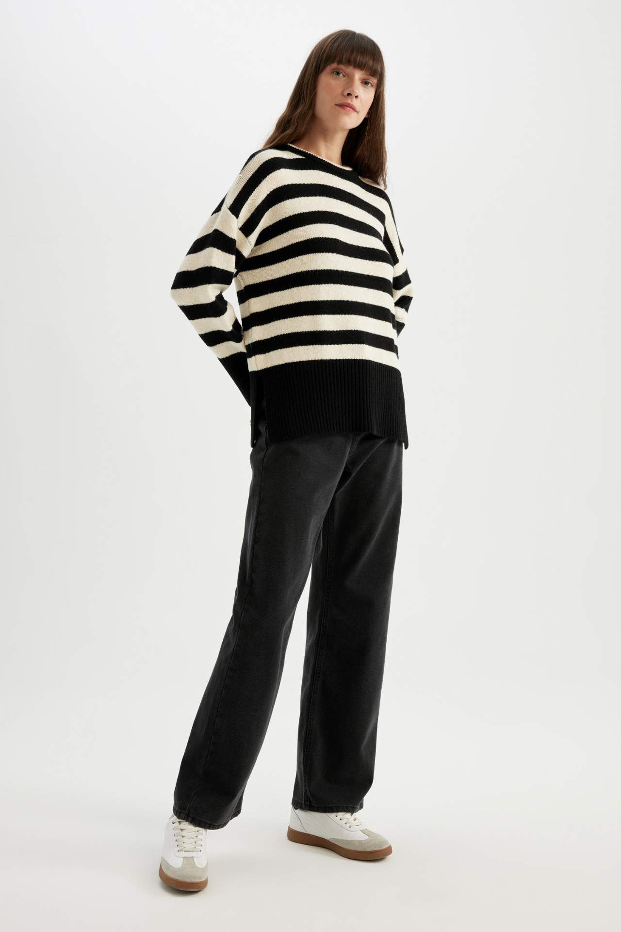 DeFactoFit Oversize Fit Çizgili Bisiklet Yaka Kazak C9054AX24WNBK27
