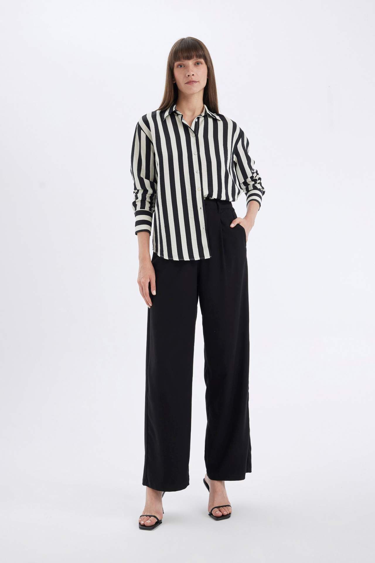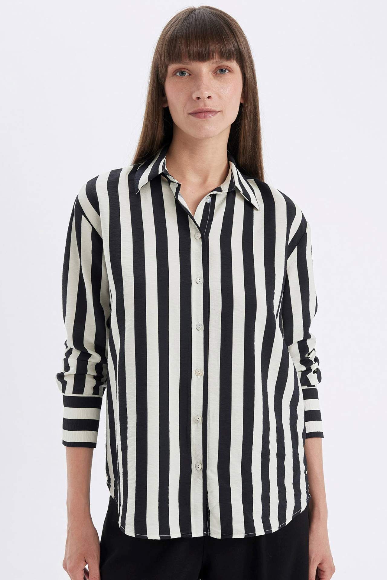 DeFactoFit Oversize Fit Çizgili Uzun Kollu Gömlek