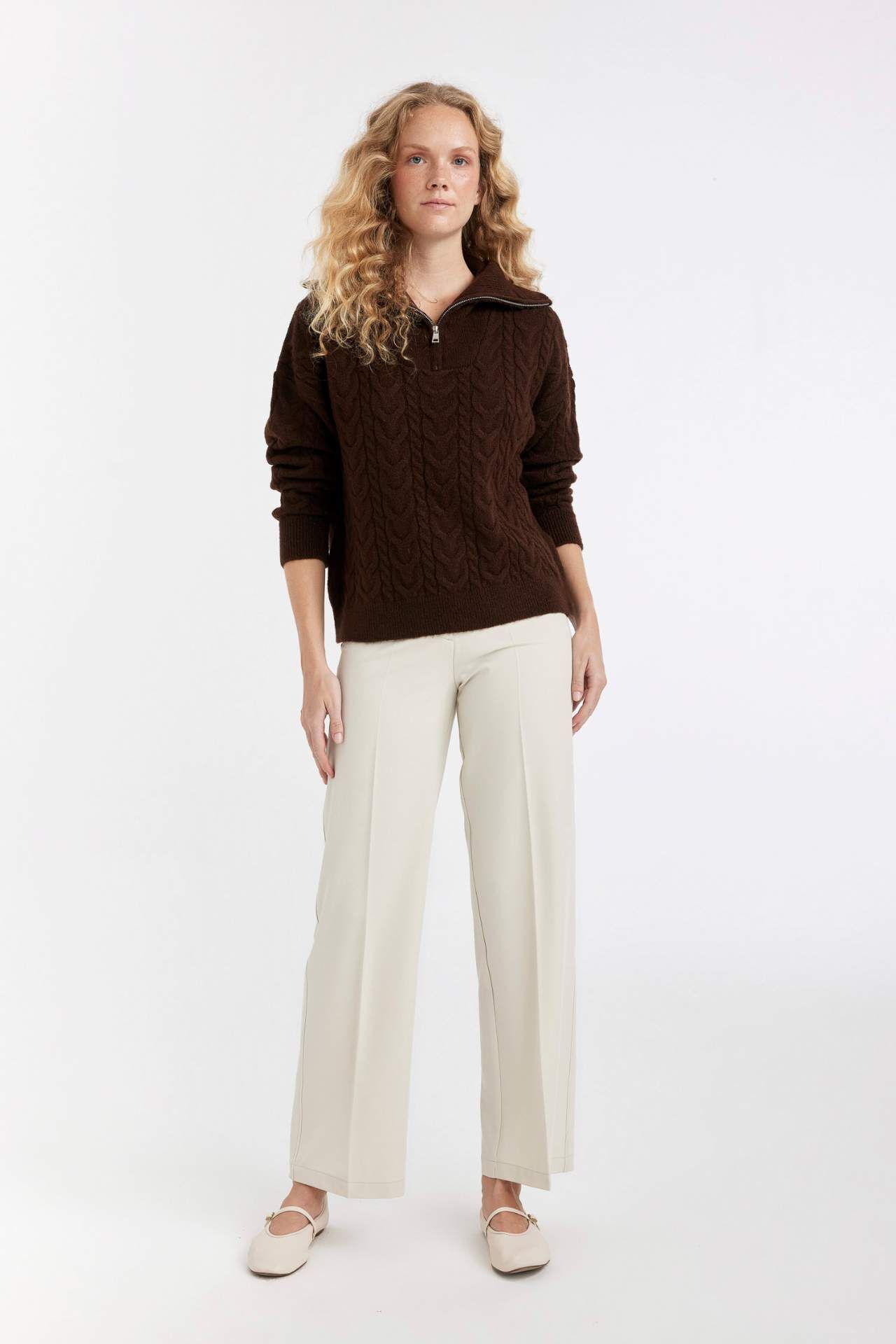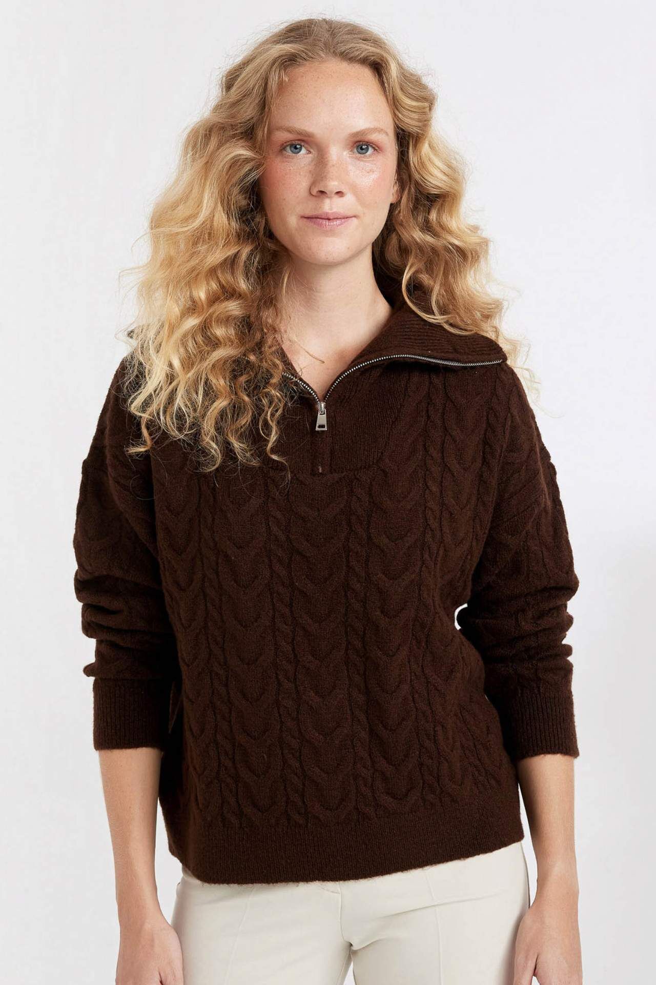 Geniş kesimli fermuarlı yaka kazak, şıklığı ve rahatlığı bir arada sunar. Kombinlerinize modern bir dokunuş katarken, özgürce hareket etmenizi sağlar. Kaliteli kumaşı ve detaylarıyla her mevsim tercih edebileceğiniz bir parça. Stilinizi yansıtın, öne çıkın. Akrilik 80%,Poliester 20%