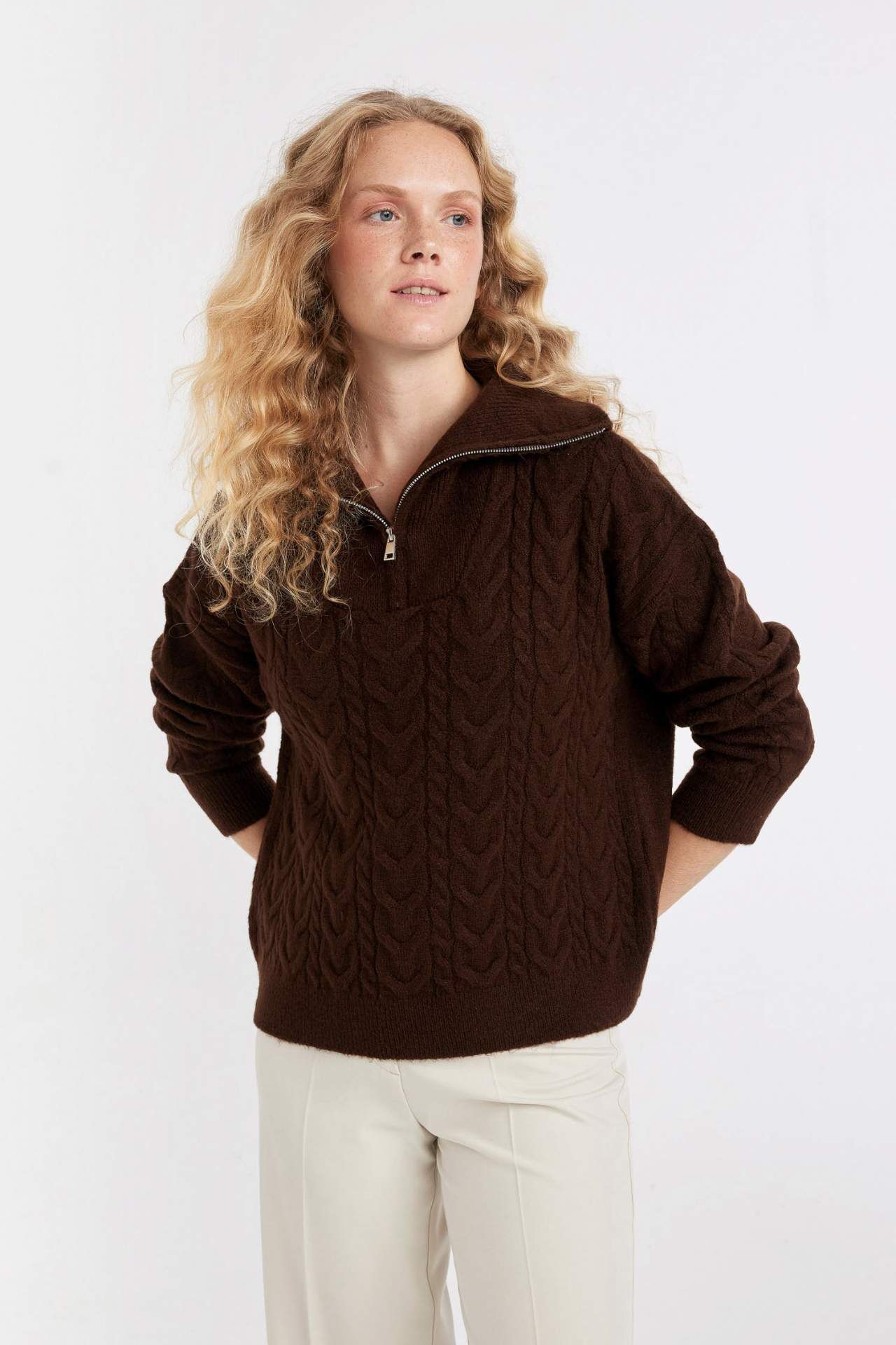 DeFacto DeFactoFit Oversize Fit Fermuarlı Yaka Kazak