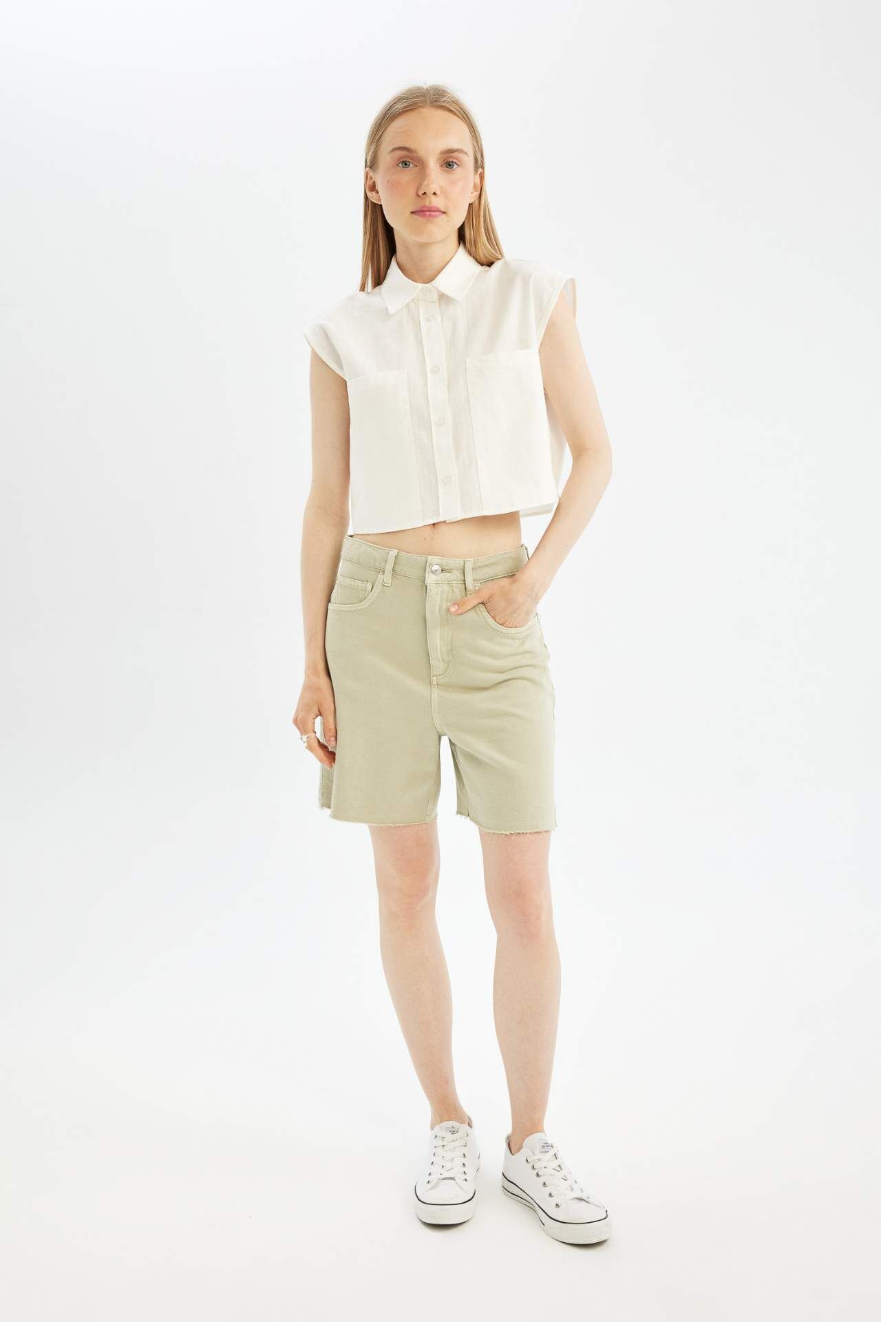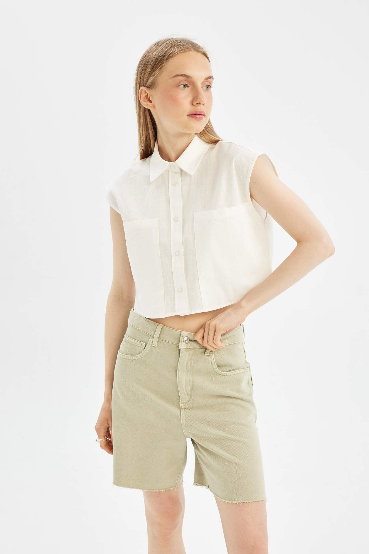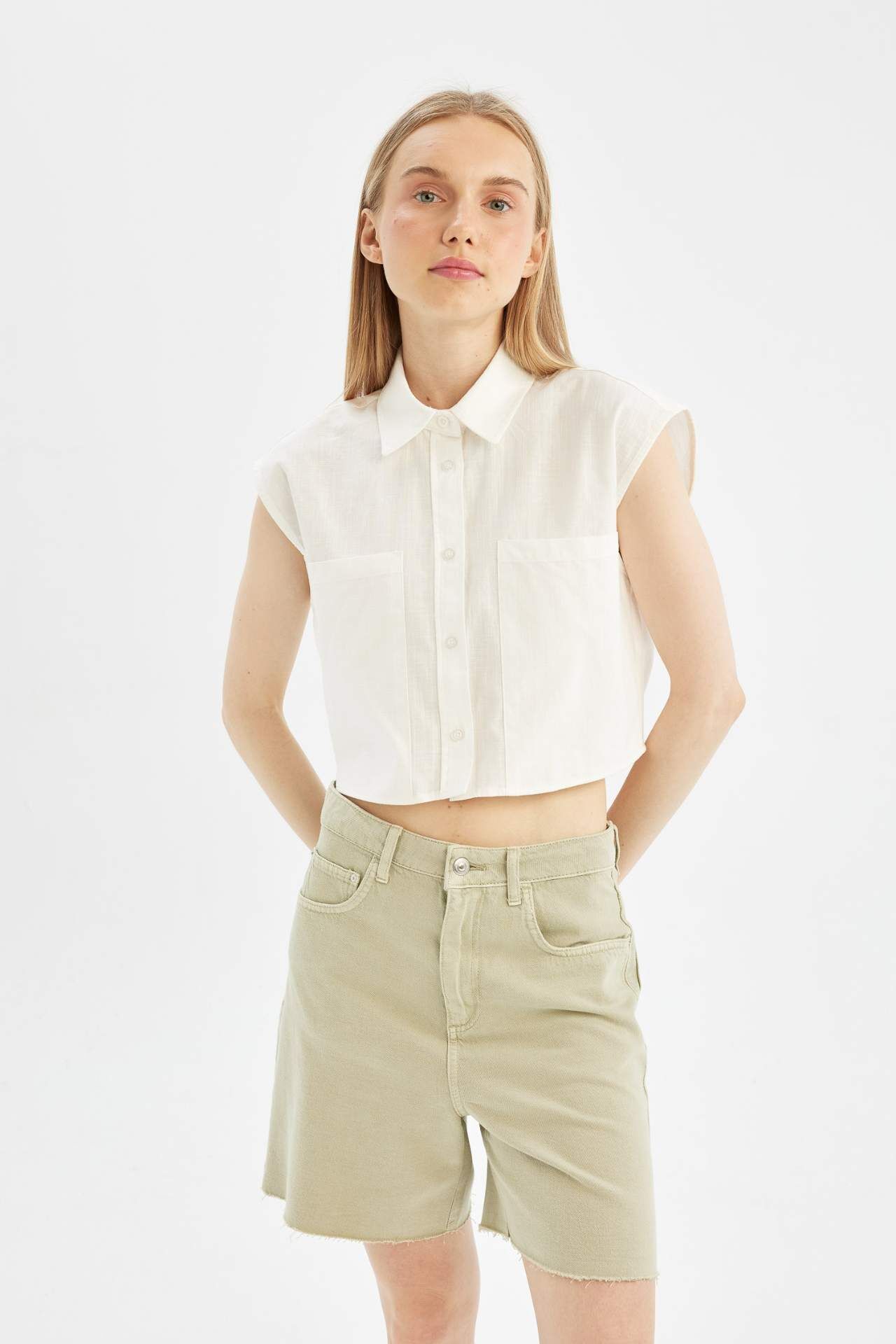 DeFacto Oversize Fit Gömlek Yaka Flamlı Pamuk Kolsuz Gömlek