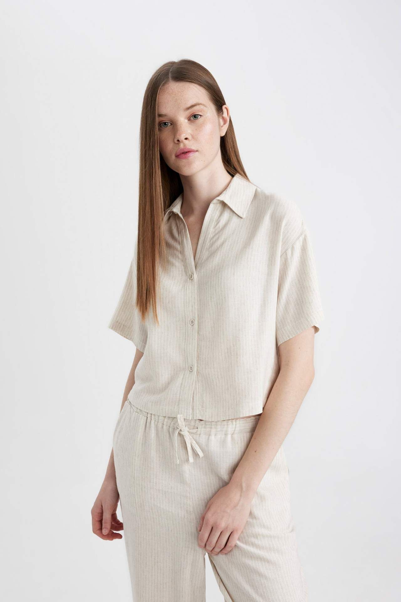 DeFacto Oversize Fit Gömlek Yaka Kısa Kollu Gömlek C4845AX24SMBG155
