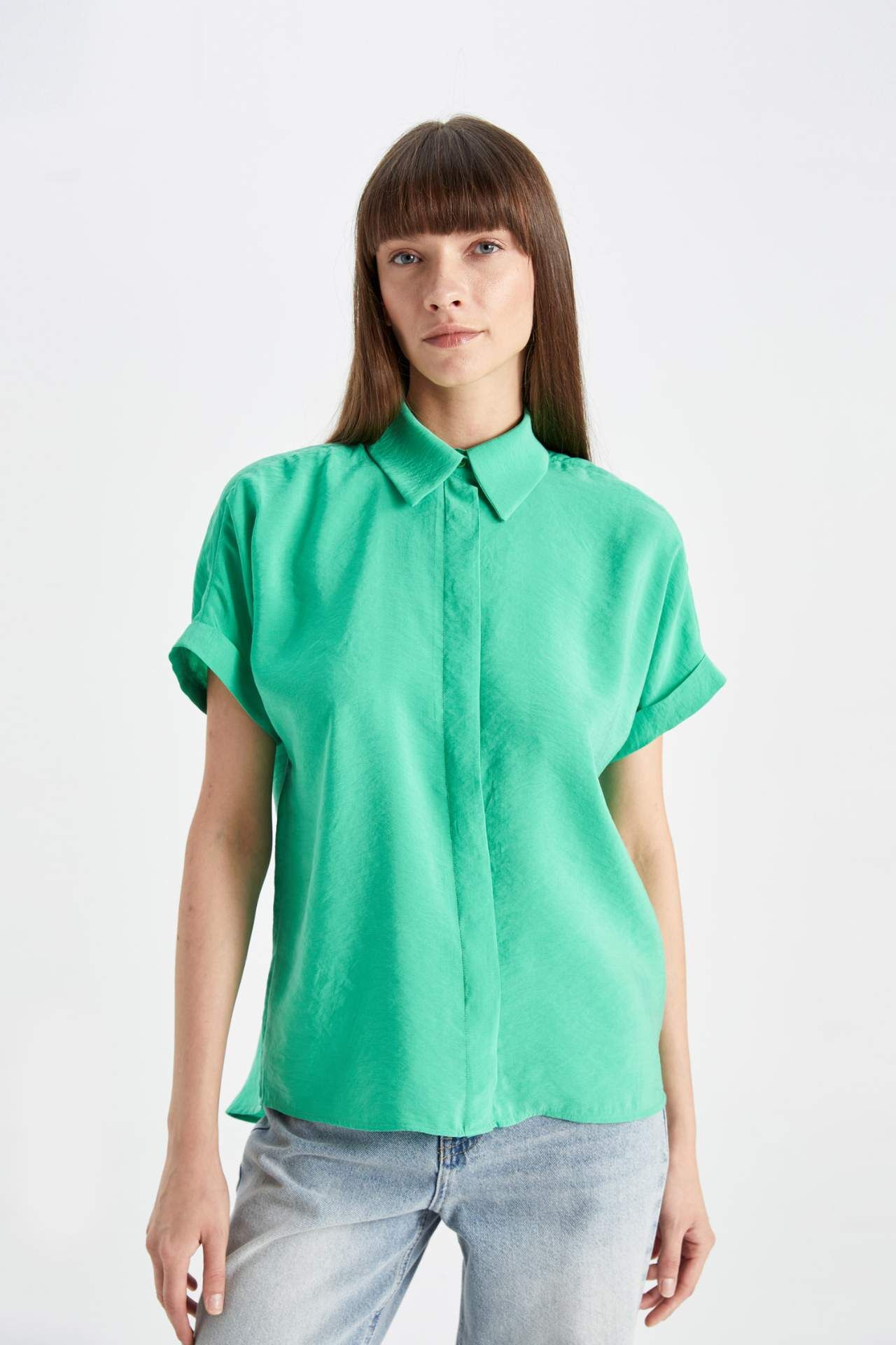 DeFactoFit Oversize Fit Gömlek Yaka Kısa Kollu Gömlek D3068AX24SMGN326