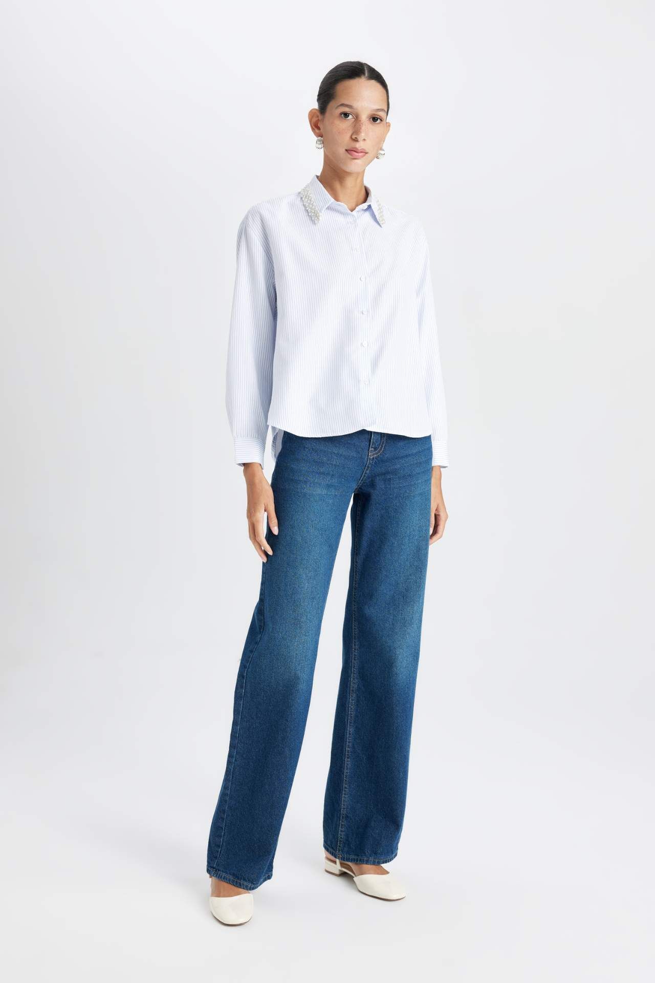 DeFacto Oversize Fit Gömlek Yaka Oxford Uzun Kollu Gömlek B9322AX24AUWT36
