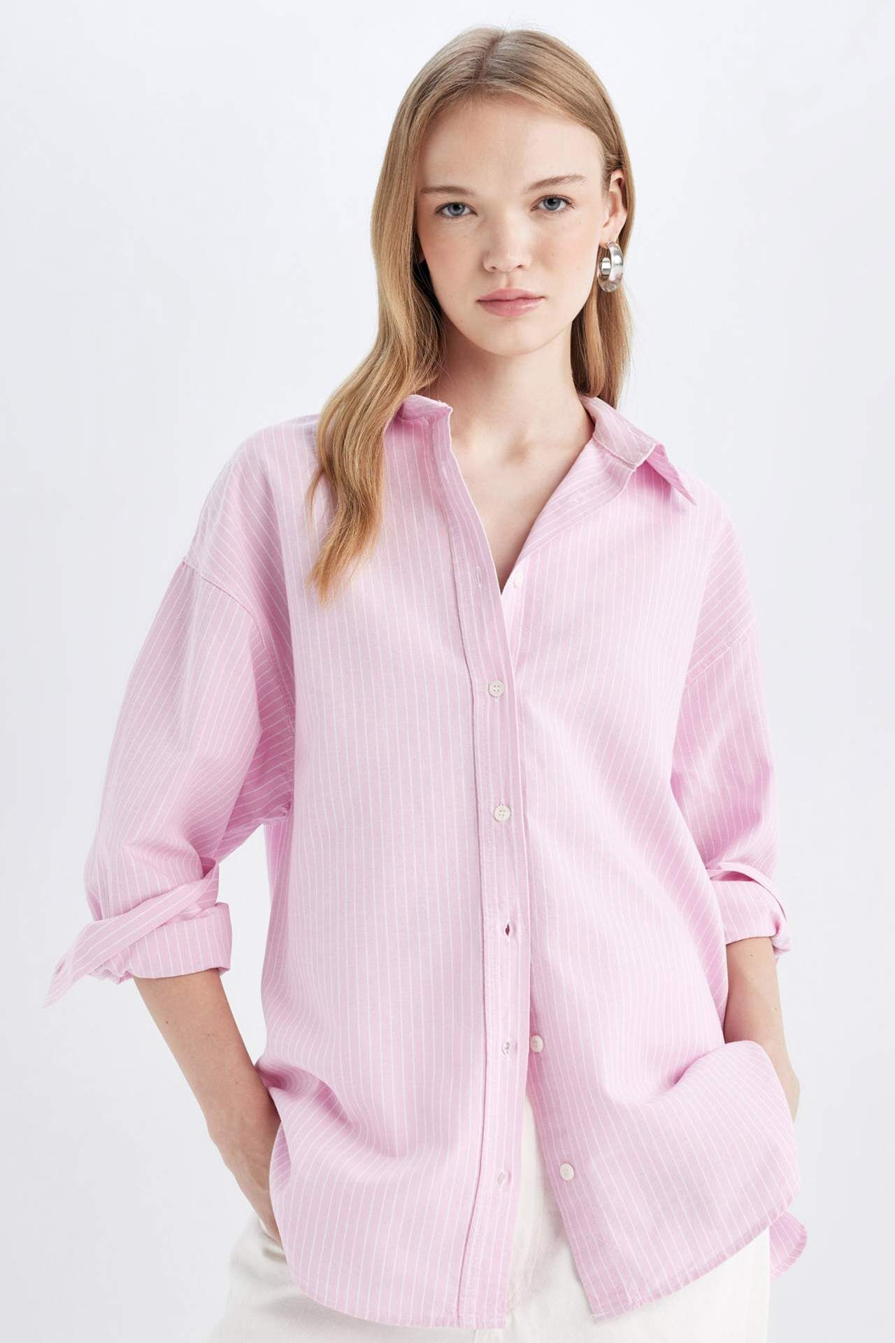 DeFacto Oversize Fit Gömlek Yaka Oxford Uzun Kollu Gömlek D4015AX24AUPN171