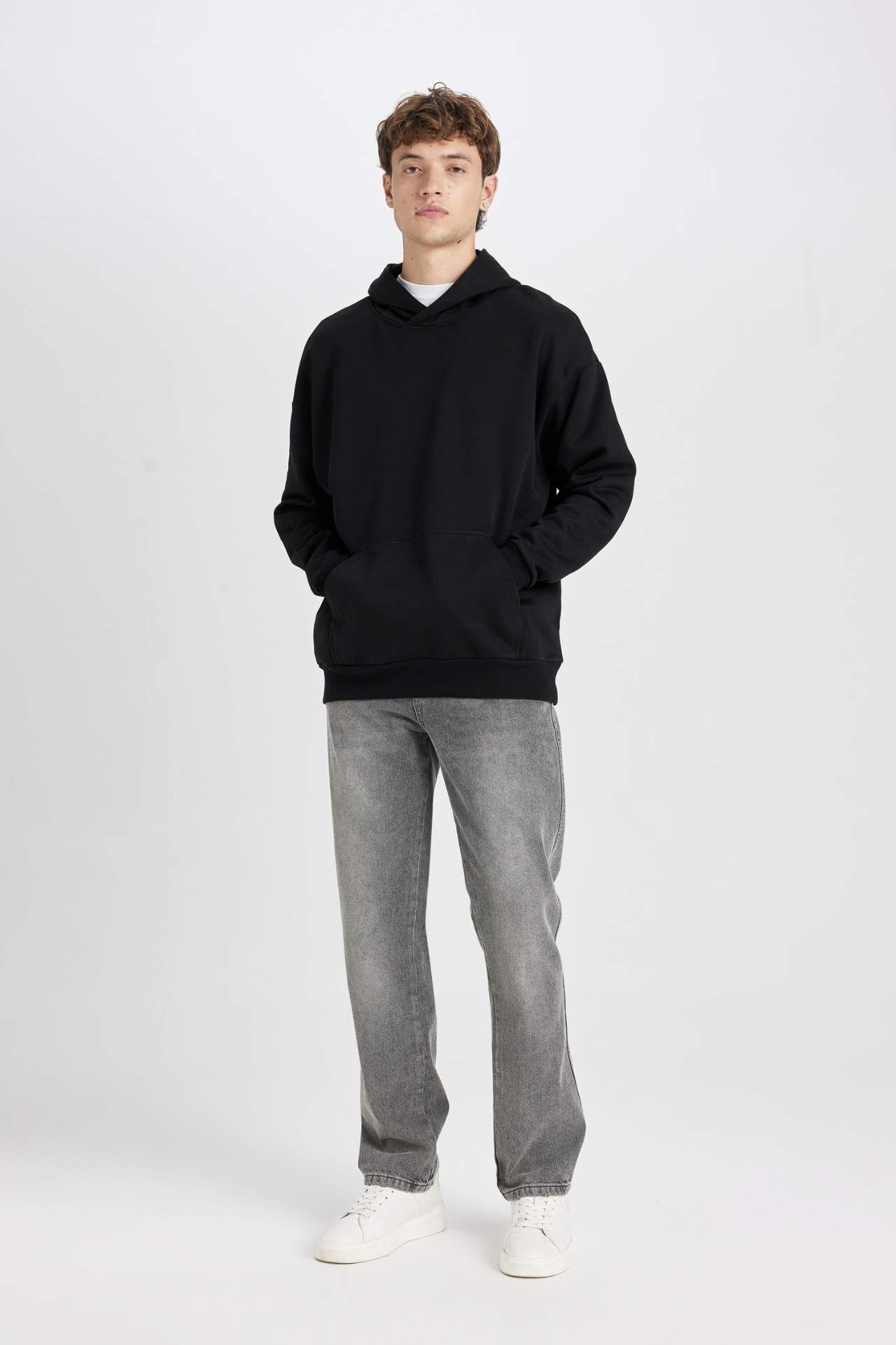 DeFacto Oversize Fit Kapüşonlu Basic Sweatshirt Y1237AZ24AUBK81