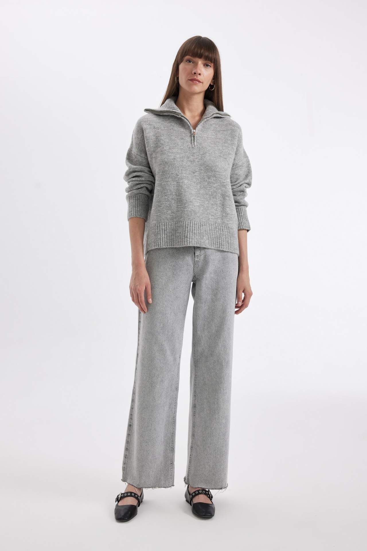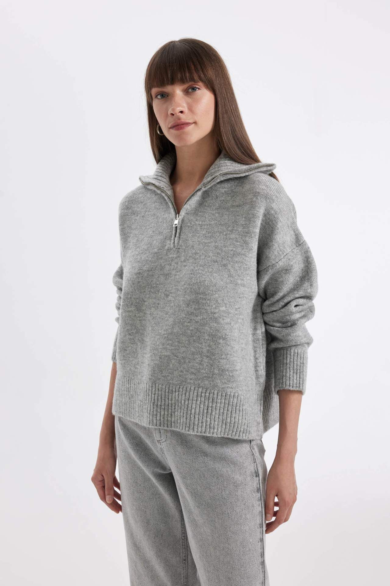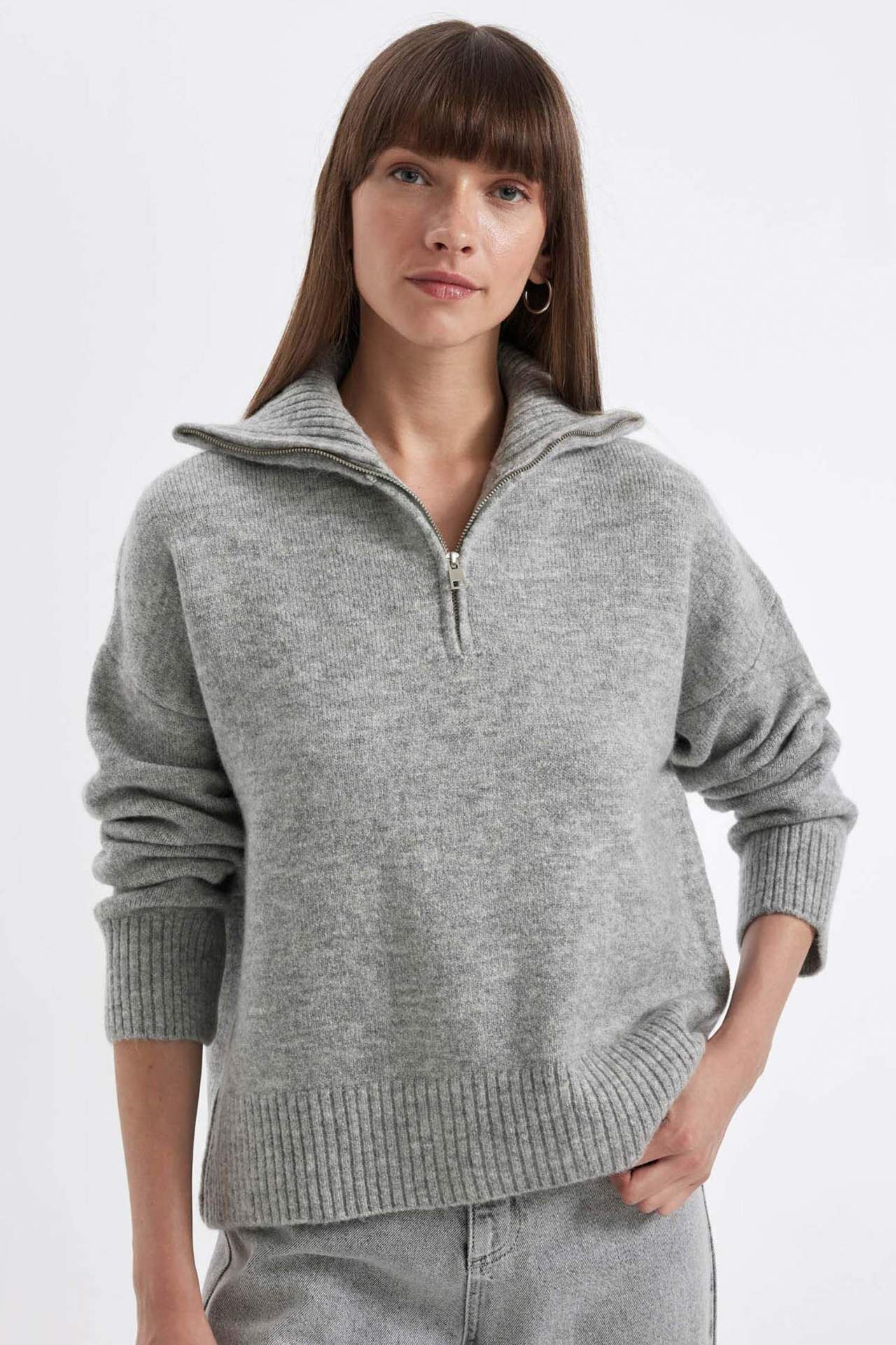 DeFacto DeFactoFit Oversize Fit Polo Yaka Yarım Fermuarlı Triko Kazak
