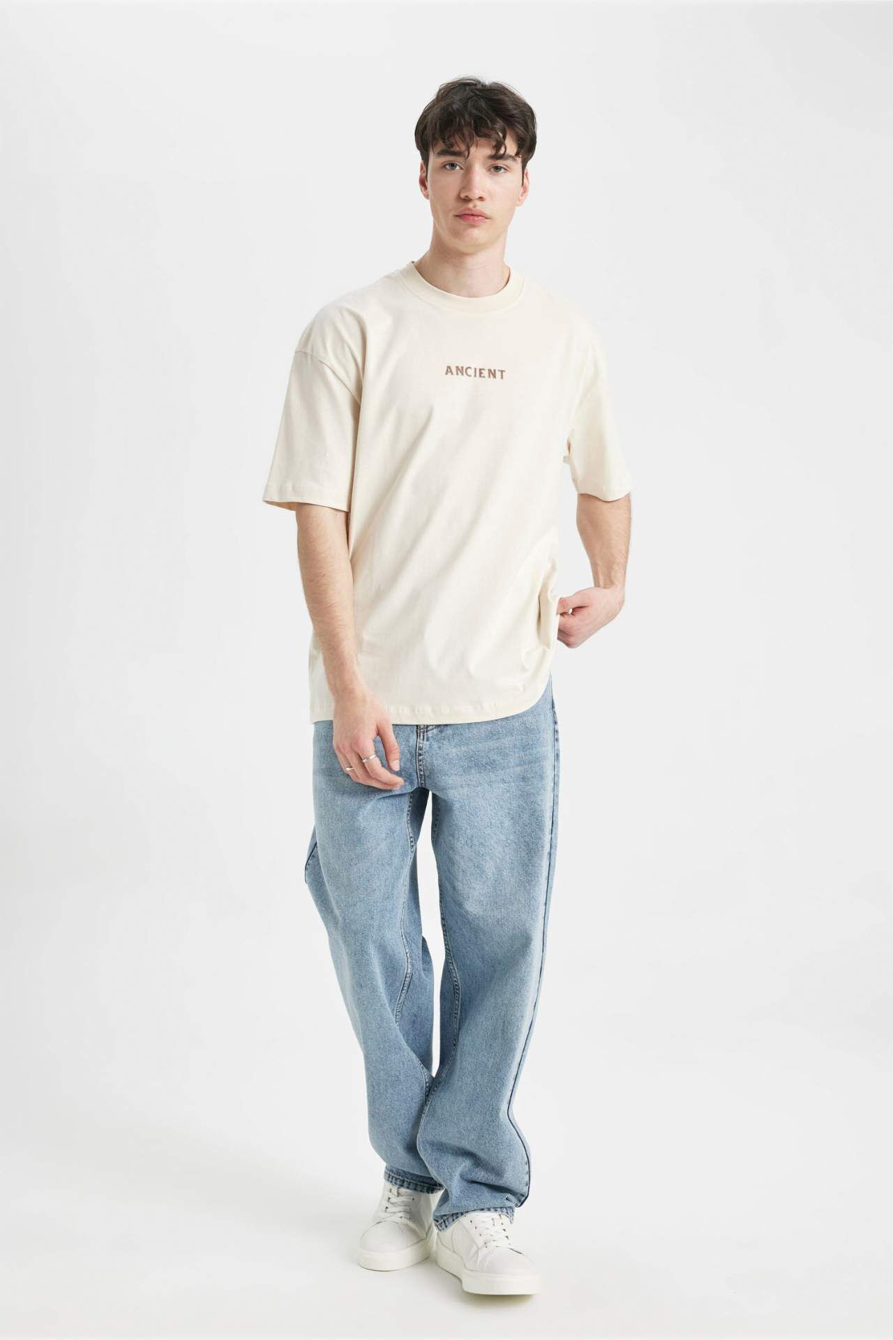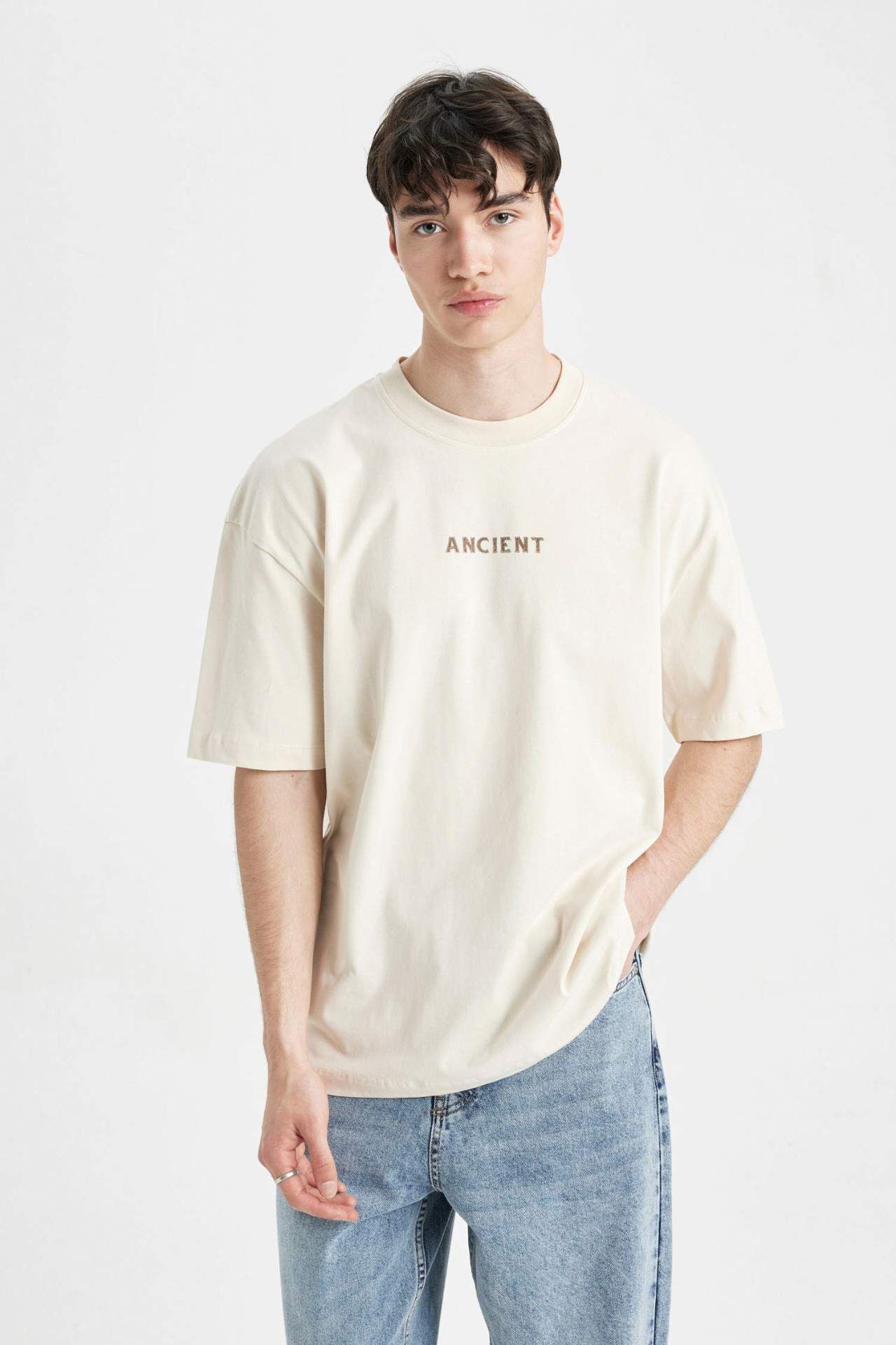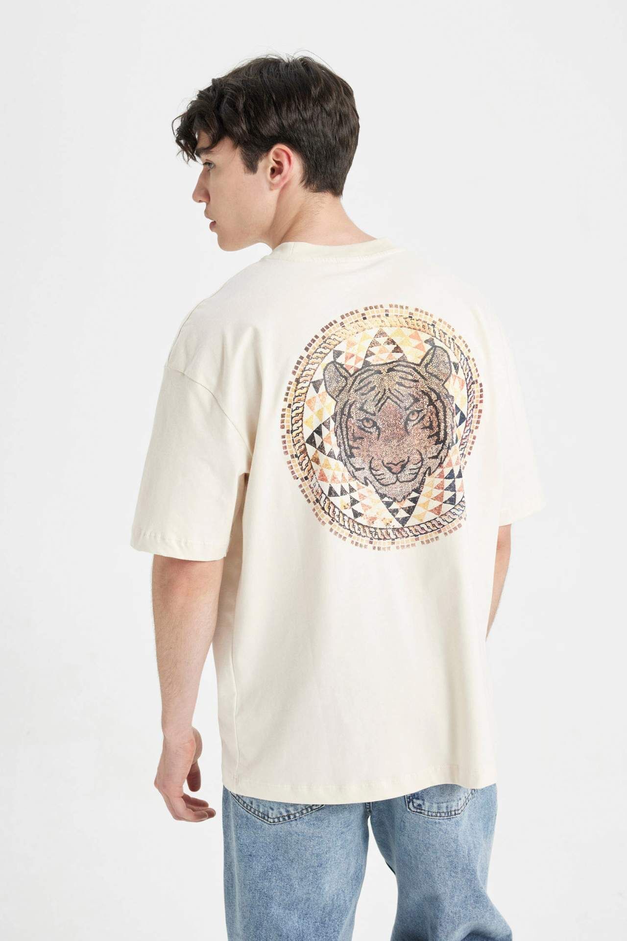 DeFacto Oversize Fit Sırt Baskılı Bisiklet Yaka Kısa Kollu Tişört