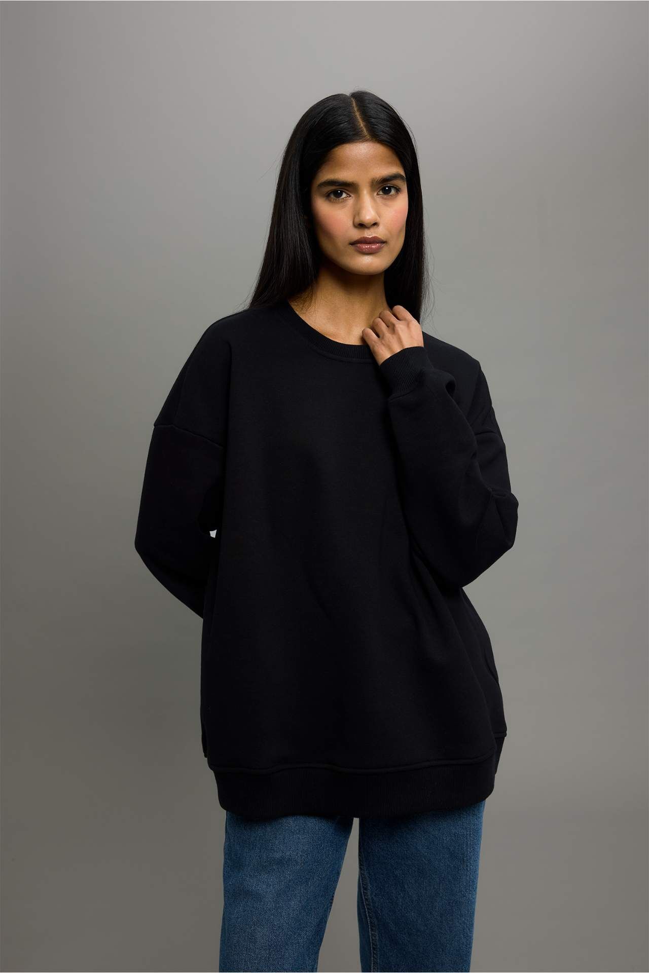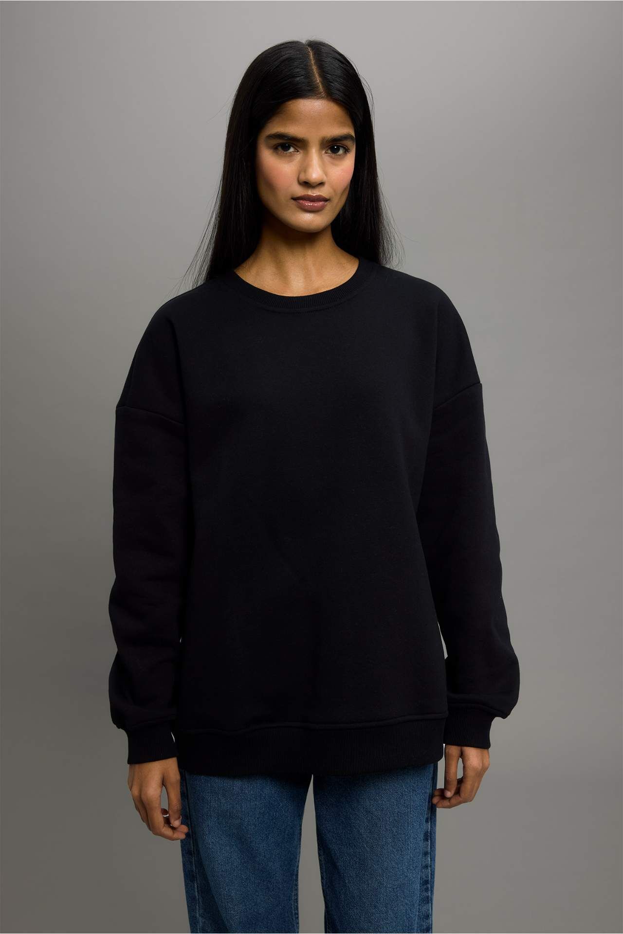DeFacto Oversize Geniş Kalıp Basic Düz Kalın Sweatshirt