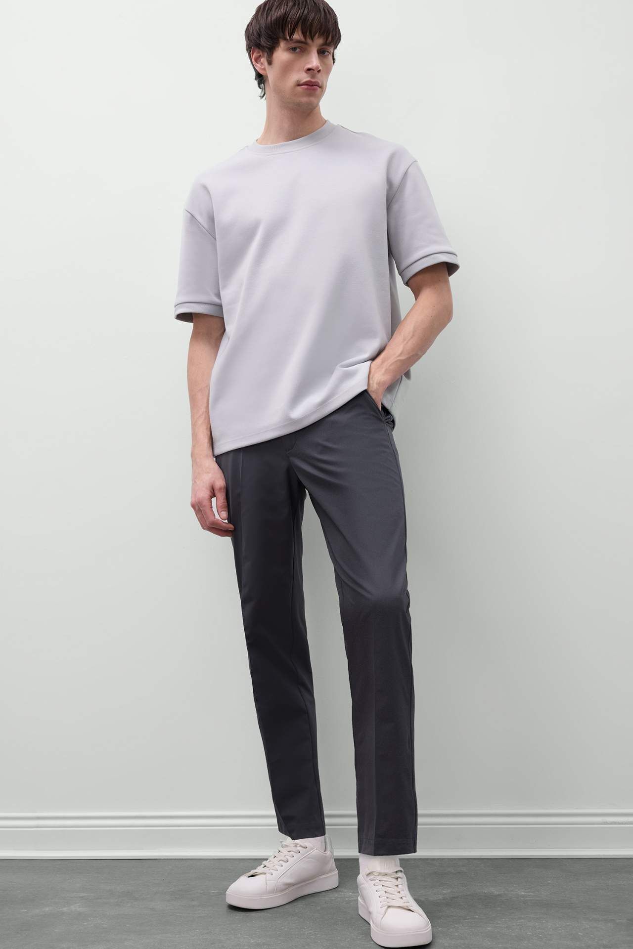 DeFacto Oversize Geniş Kalıp Bisiklet Yaka Ağır Kumaş Basic Düz Kısa Kollu Tişört