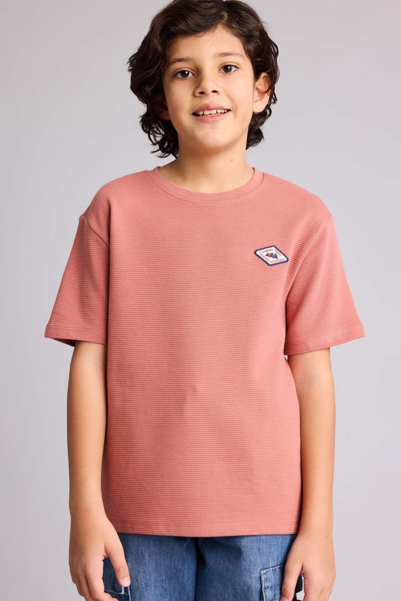 Oversıze Geniş Kalıp Bisiklet Yaka Aplike Kısa Kollu Tişört Erkek Çocuk