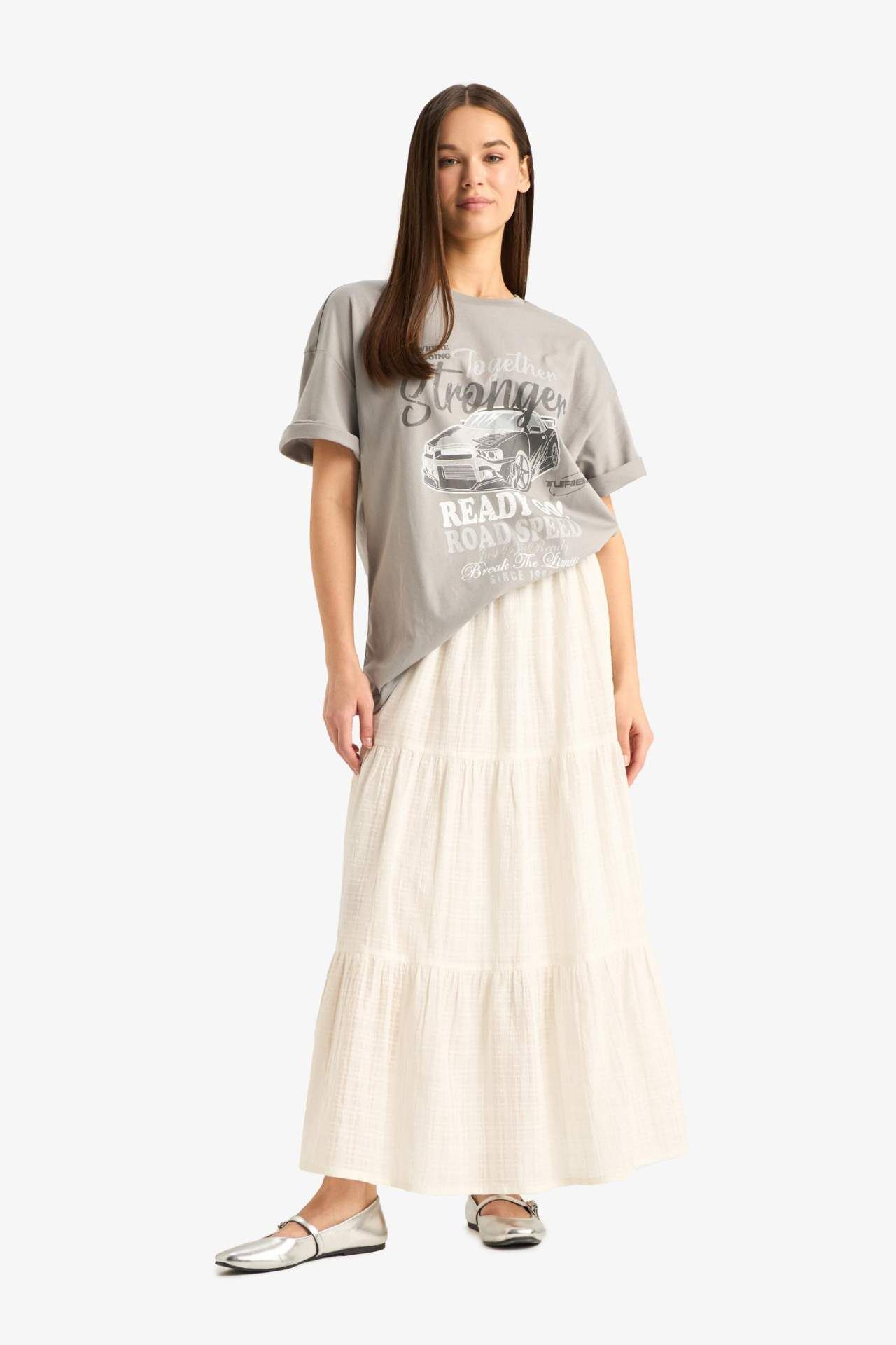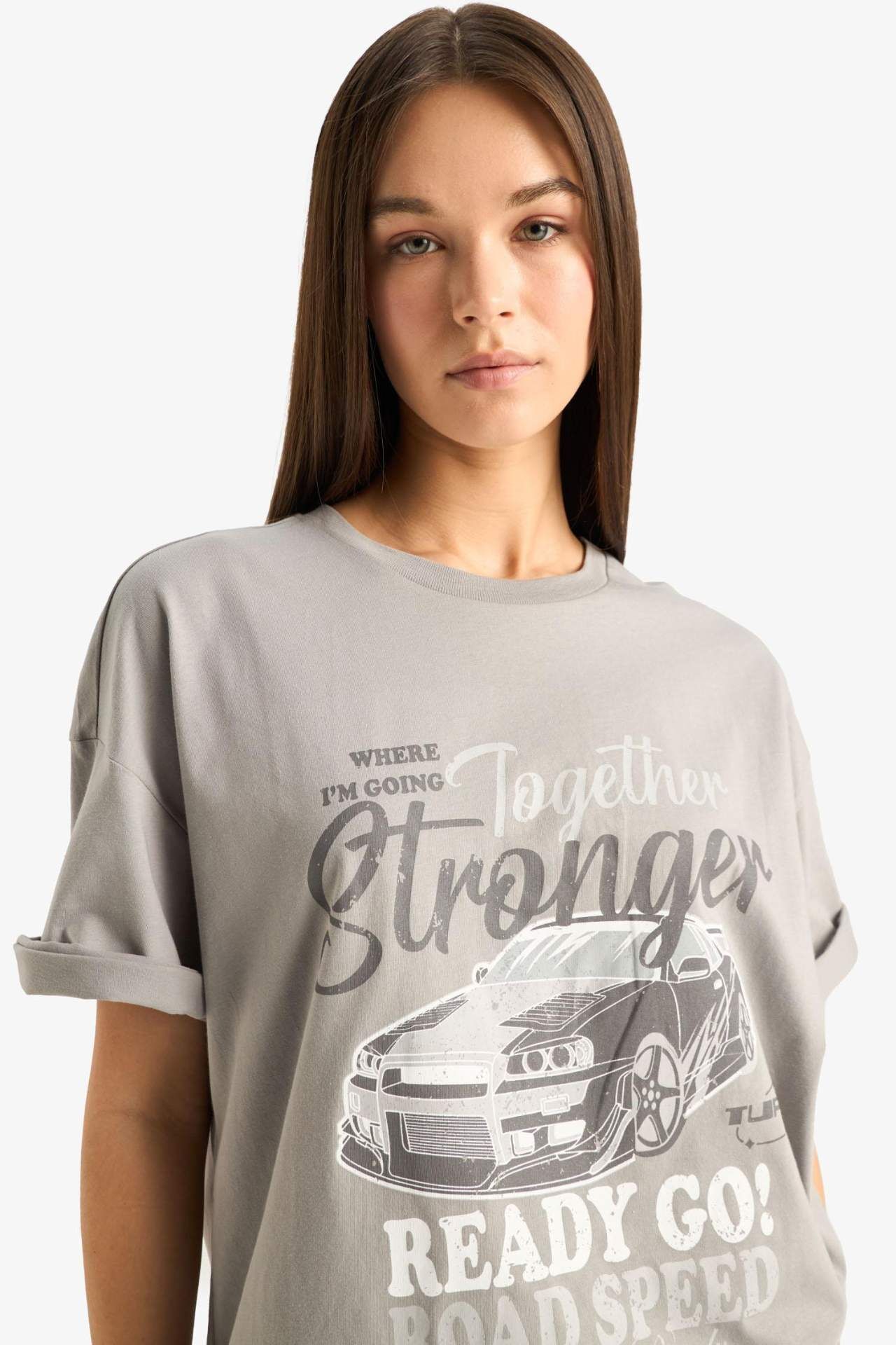 Yetişkin kadınlar için özel olarak tasarlanan örme kumaştan üretilmiş Gri baskılı kısa kollu tişört. Oversize geniş kalıbı ve düşük omuz detayı ile şık ve rahat bir görünüm sunar. Sürdürülebilir malzemeler kullanılarak üretilmiş, yaz mevsiminde rahatlıkla kullanılabilir. Bisiklet yaka ve ribanalı yaka detayları ile öne çıkar. Pamuk 100%,Pamuk 100%,Pamuk 100%,Pamuk 100%,Pamuk 100%,Pamuk 100%,Pamuk 100%,Pamuk 100%