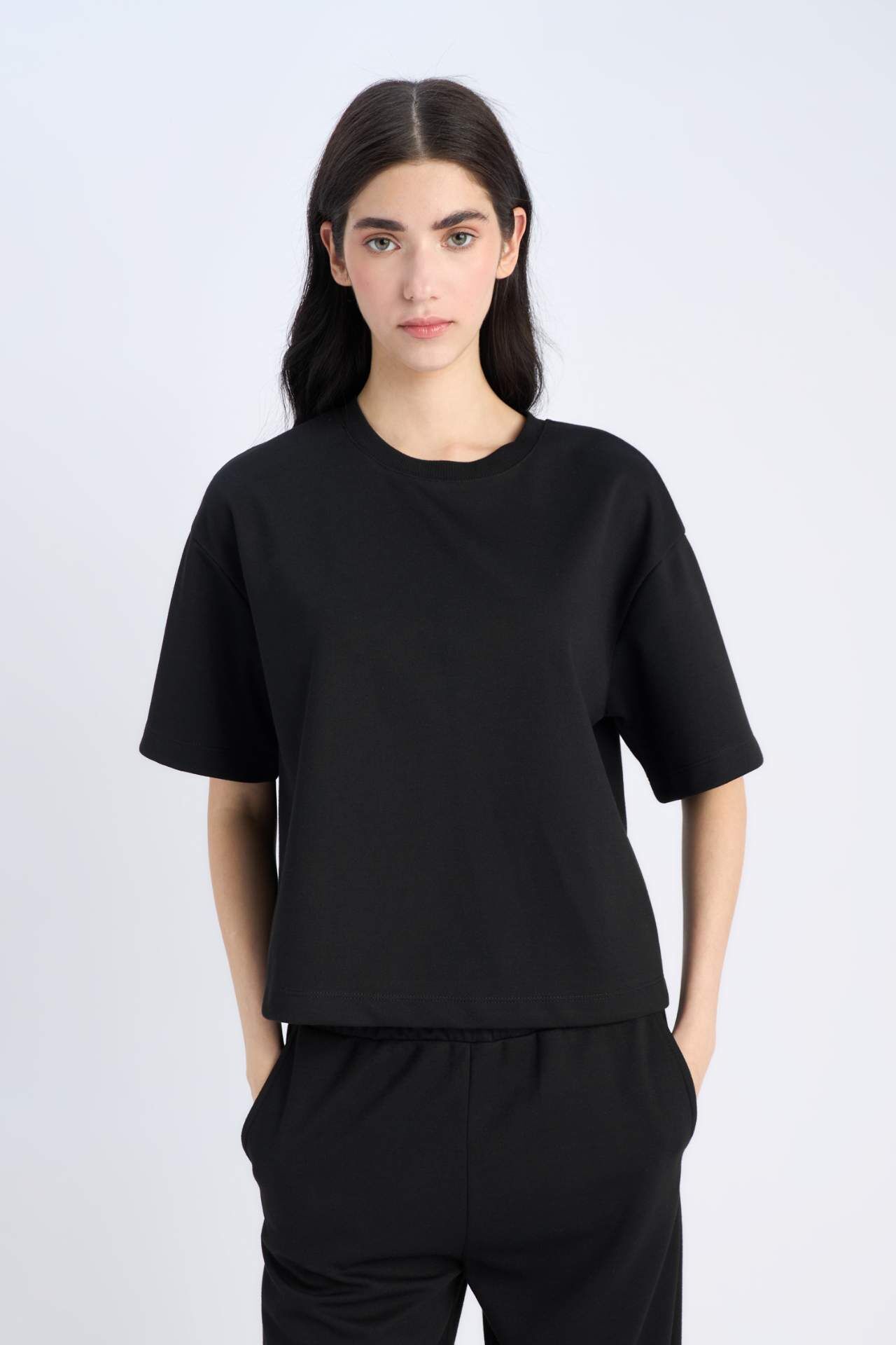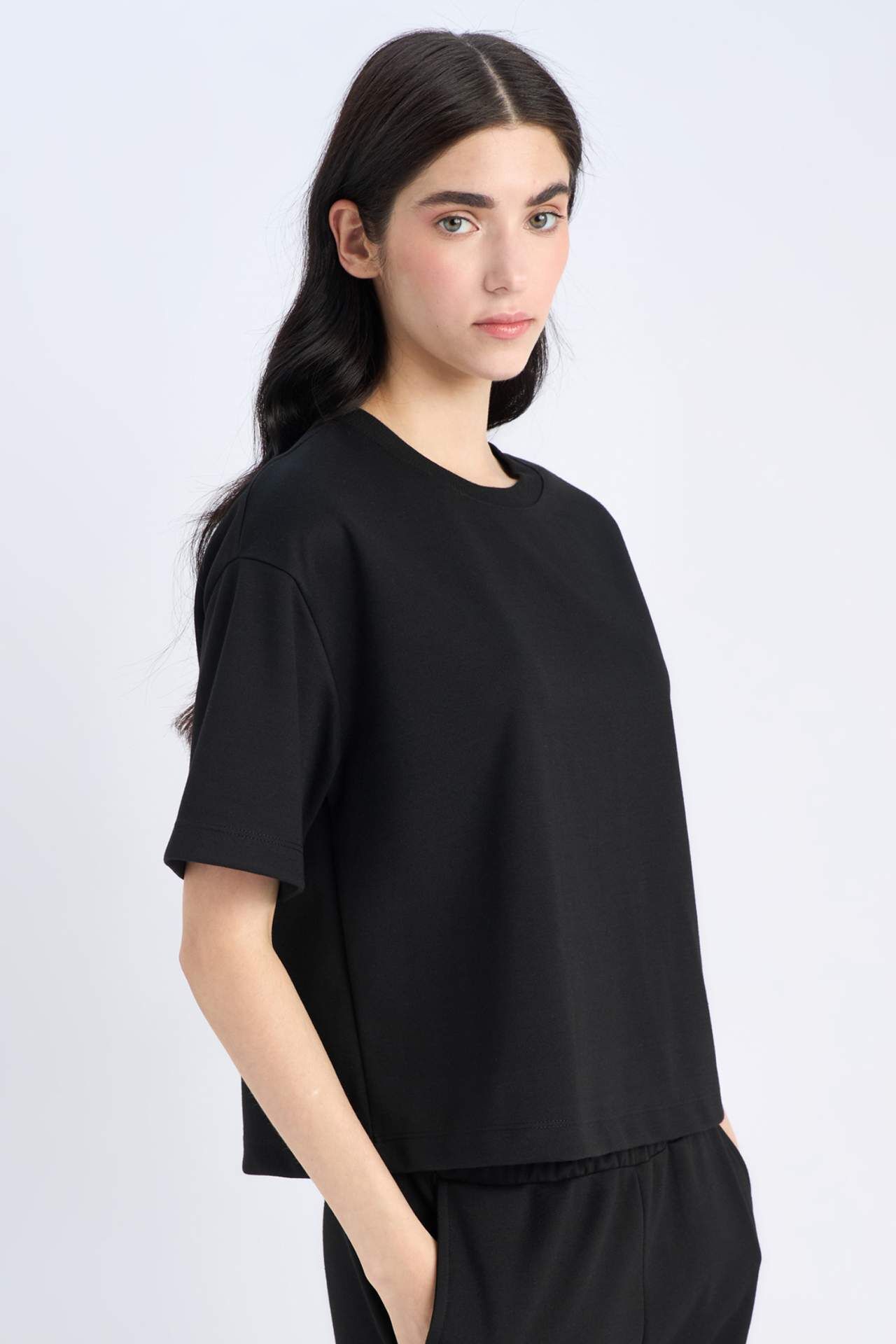 Oversize Geniş Kalıp Bisiklet Yaka Basic Düz Kısa Kollu Tişört