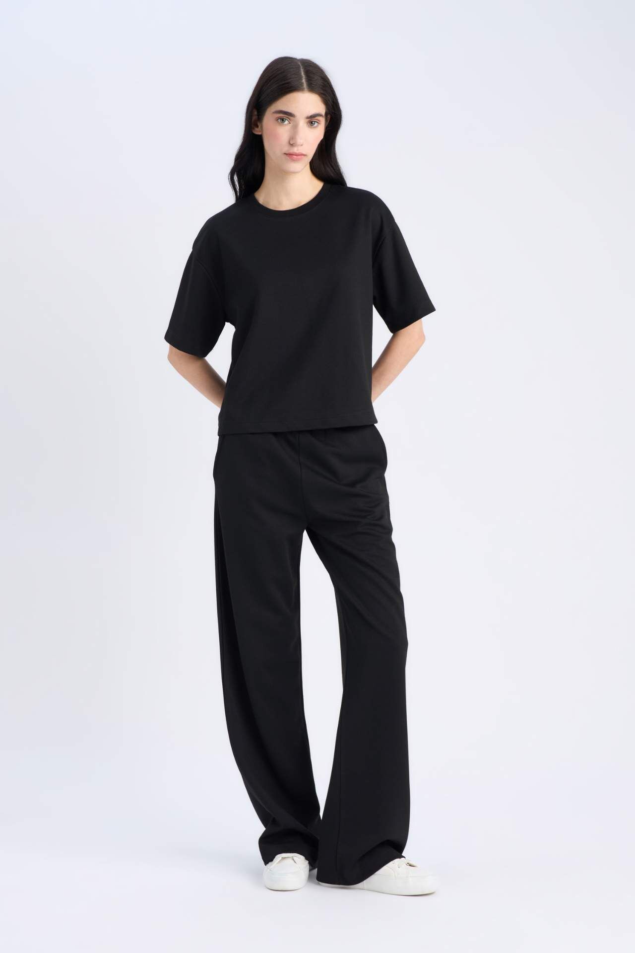 Oversize basic tişört, rahat ve bol kesimiyle gün boyu konfor sunar. Sade tasarımı sayesinde farklı kombinlerle kolayca stilinizi tamamlar. Hem evde hem de günlük dış mekanlarda rahatlıkla tercih edilebilecek temel bir parça. Viskoz 20%,Poliester 80%,Viskoz 20%,Poliester 80%