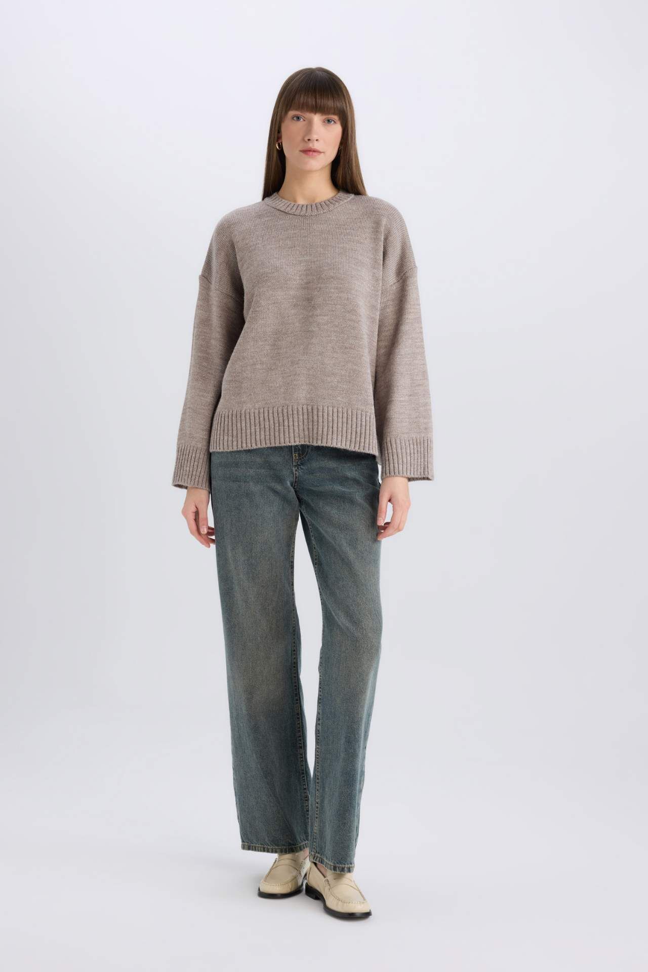 DeFacto Oversize Geniş Kalıp Bisiklet Yaka Basic Düz Triko Kazak D0036AX25SPBG476