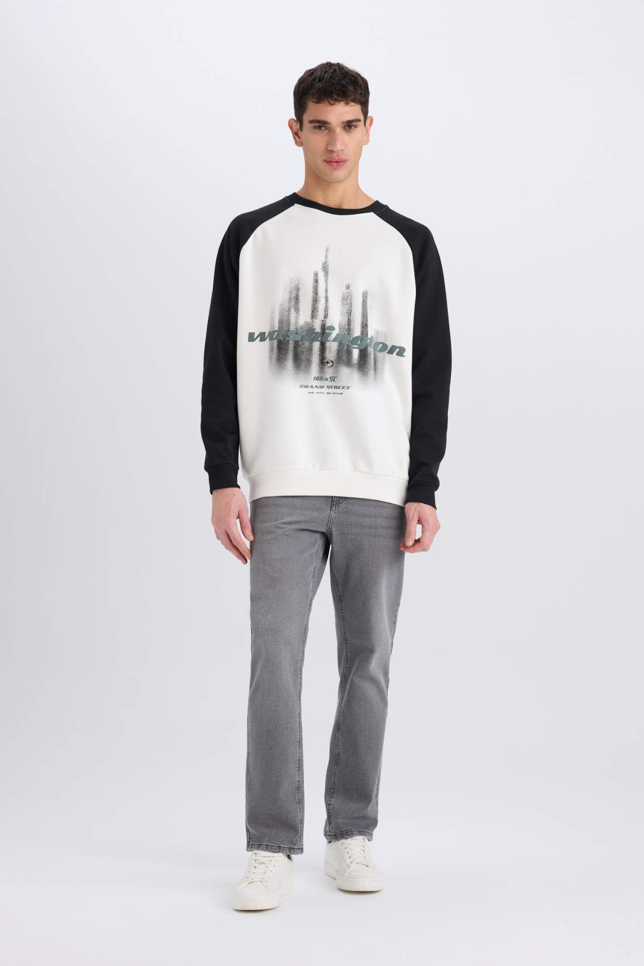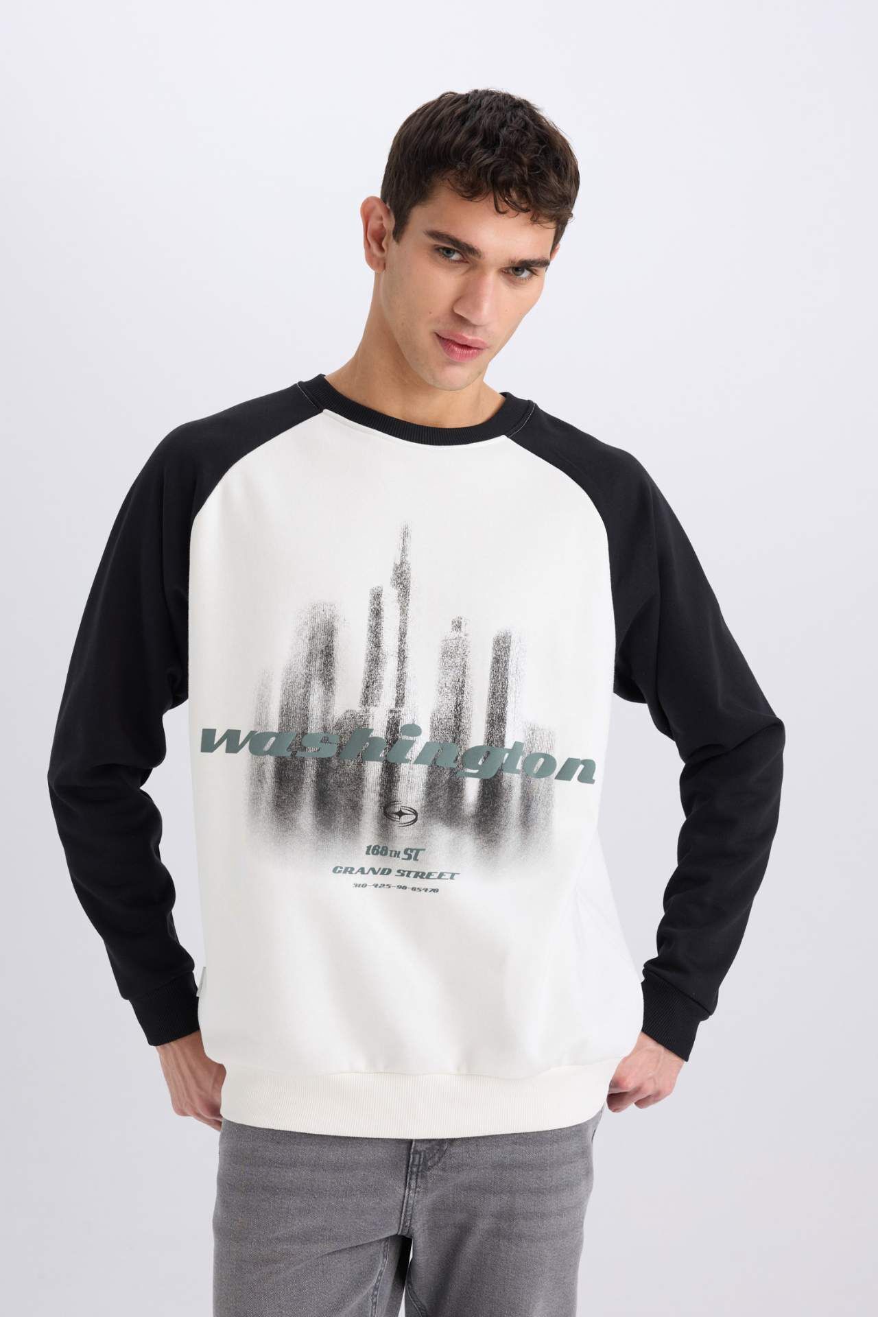 DeFacto Oversize Geniş Kalıp Bisiklet Yaka Baskılı Sweatshirt