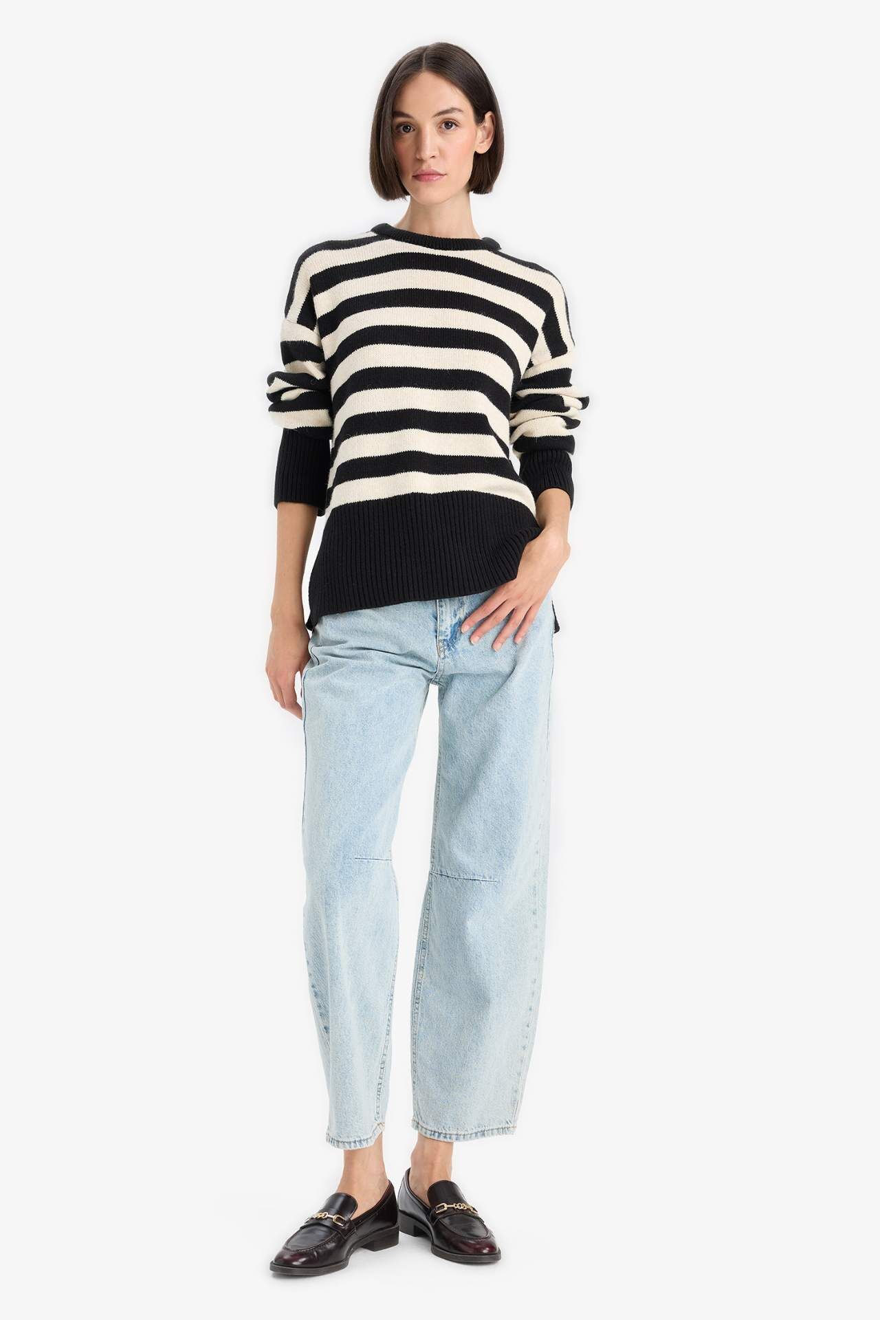 Oversize kesimi ve çizgili deseniyle dikkat çeken bu kazak, modern ve rahat bir stil sunar. Geniş kalıbı sayesinde hareket özgürlüğü sağlarken bisiklet yaka detayıyla sade bir şıklık kazandırır. Günlük kullanıma uygun yapısıyla gardırobunuzun favorisi olmaya aday. Akrilik 80%,Elastan 7%,Poliester 13%,Akrilik 80%,Elastan 7%,Poliester 13%,Akrilik 80%,Elastan 7%,Poliester 13%,Akrilik 80%,Elastan 7%,Poliester 13%,Akrilik 80%,Elastan 7%,Poliester 13%,Akrilik 80%,Elastan 7%,Poliester 13%,Akrilik 80%,Elastan 7%,Poliester 13% Manken Bedeni: Göğüs: 83 Boy: 1,81 Basen: 90 Bel: 58