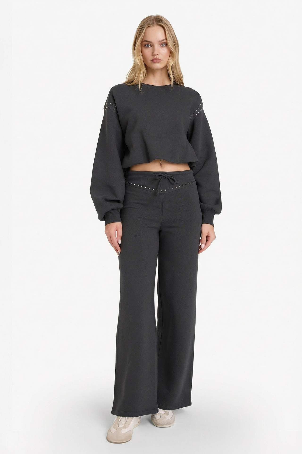 Oversize Geniş Kalıp Bisiklet Yaka Kalın Kumaş Sweatshirt