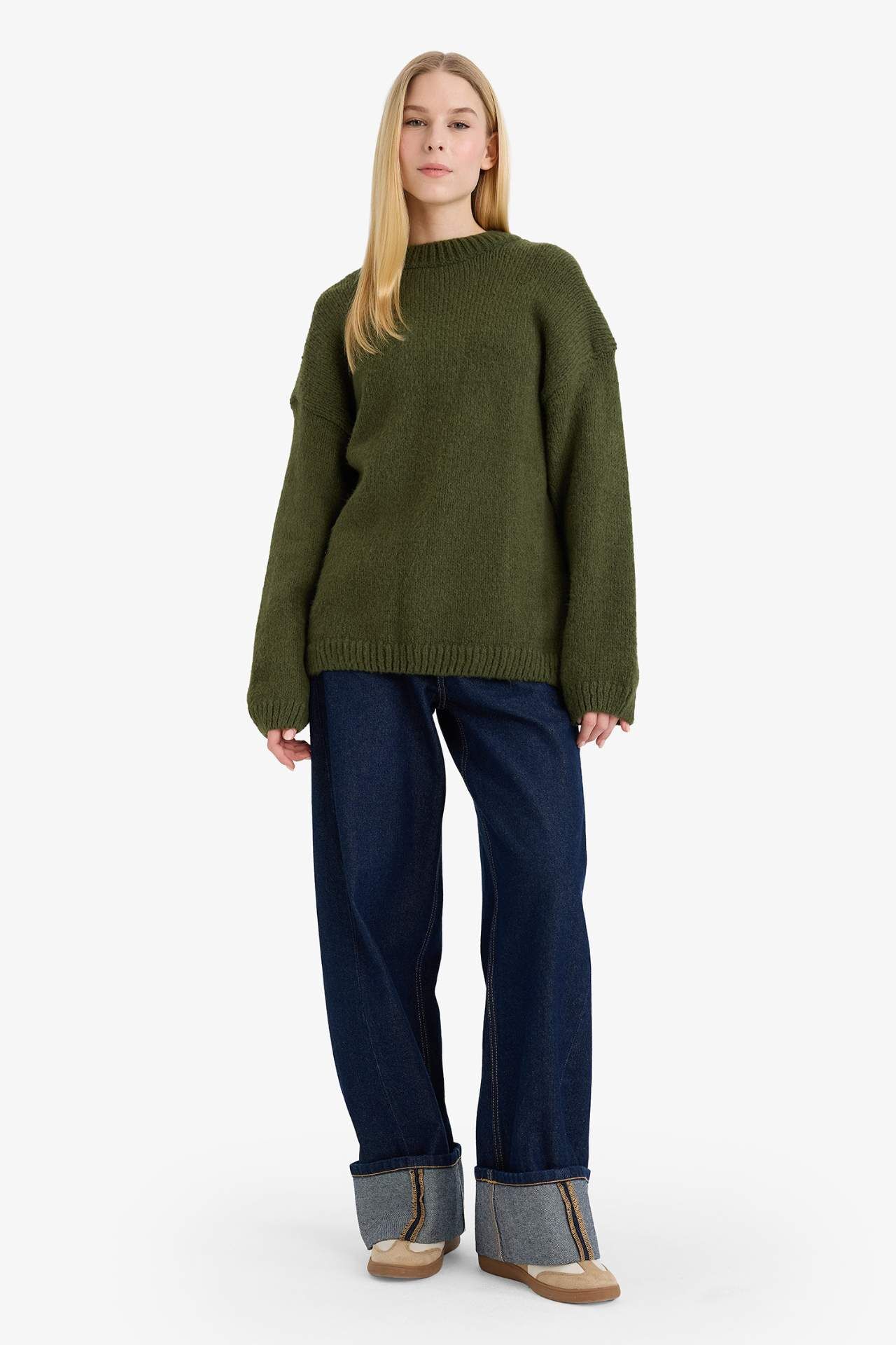 Oversize Geniş Kalıp Bisiklet Yaka Kazak