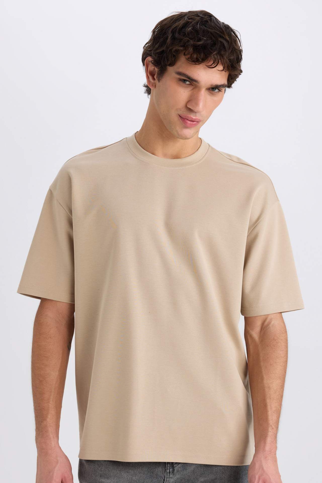 DeFacto Oversize Geniş Kalıp Bisiklet Yaka Kısa Kollu Ağır Kumaş Tişört X3926AZ25SPBG732