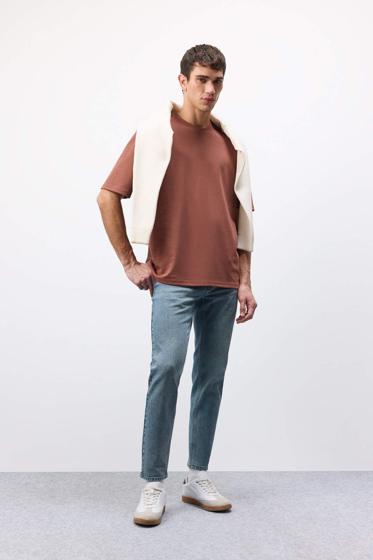 Oversize Geniş Kalıp Bisiklet Yaka Kısa Kollu Ağır Kumaş Tişört, rahat kesimi ve dayanıklı kumaşıyla şıklığı ve konforu bir arada sunar. Geniş kalıp tasarımı, özgür bir hareket imkanı tanırken, ağır kumaşı uzun süreli kullanım sağlar. Hem gündelik hem de rahat kombinler için ideal bir tercih. Pamuk 51%,Poliester 49%,Pamuk 51%,Poliester 49%,Pamuk 51%,Poliester 49% Manken Bedeni: Göğüs: 96 Boy: 1,89 Basen: 97 Bel: 77
