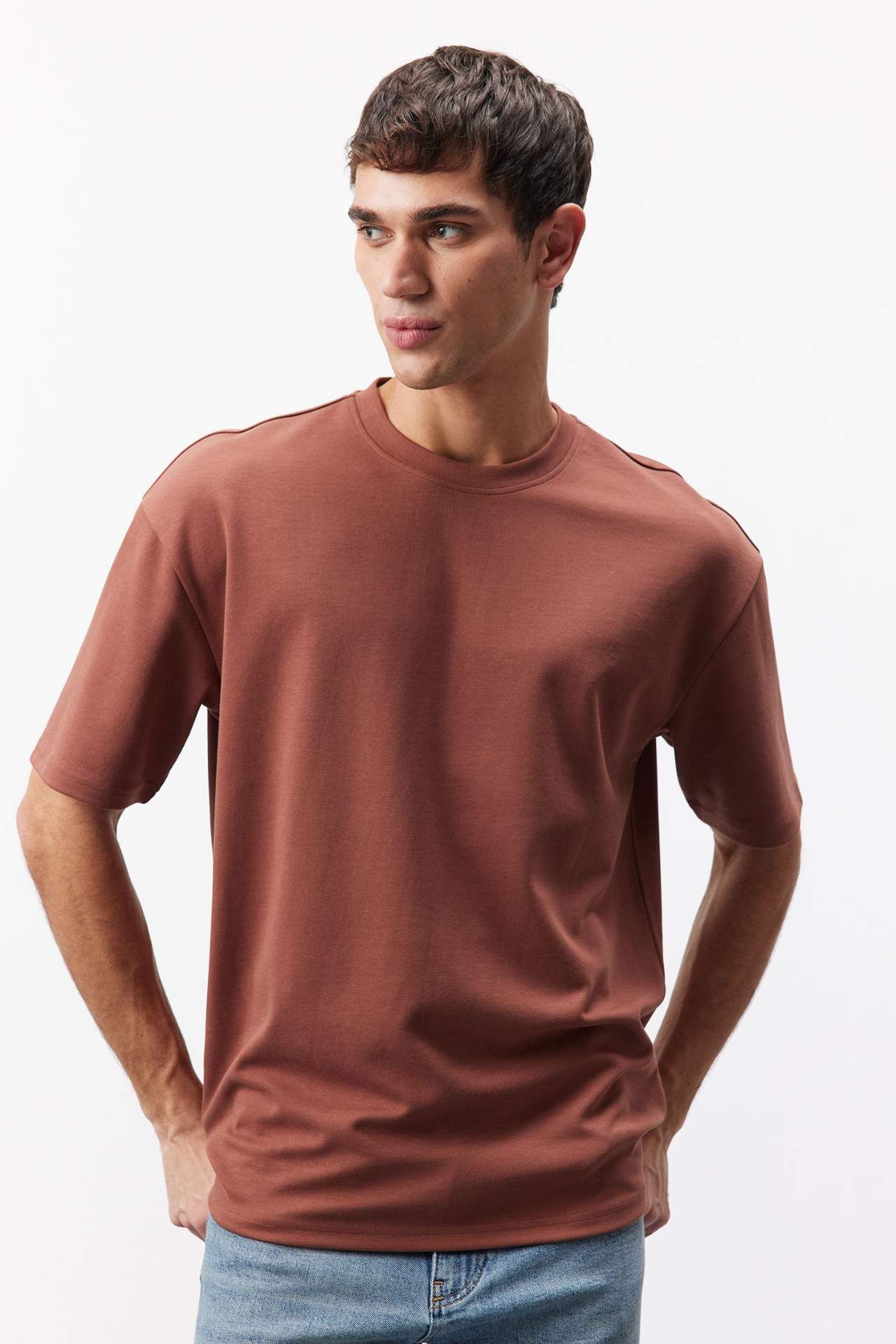 DeFacto Oversize Geniş Kalıp Bisiklet Yaka Kısa Kollu Ağır Kumaş Tişört X3926AZ25SPBN326