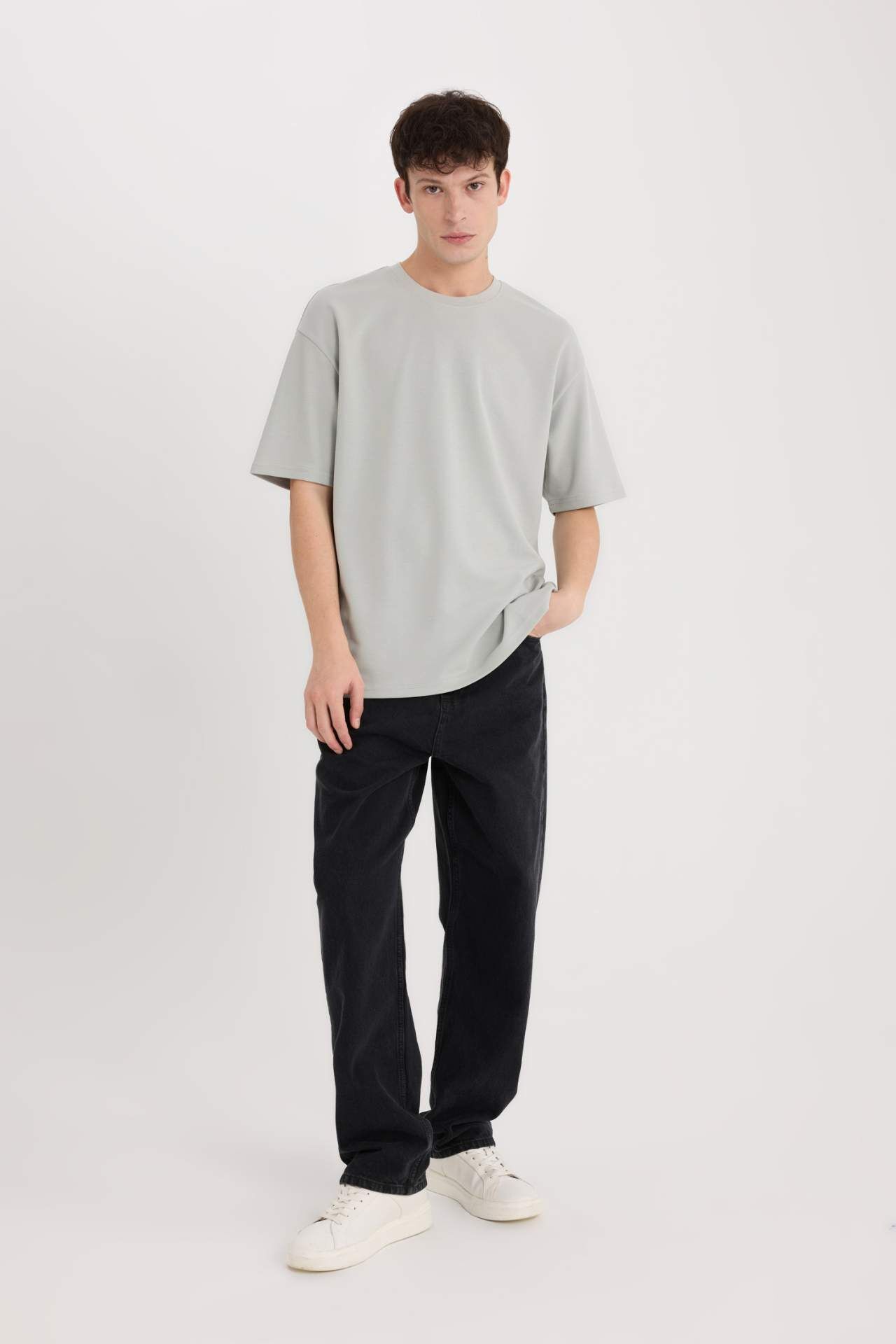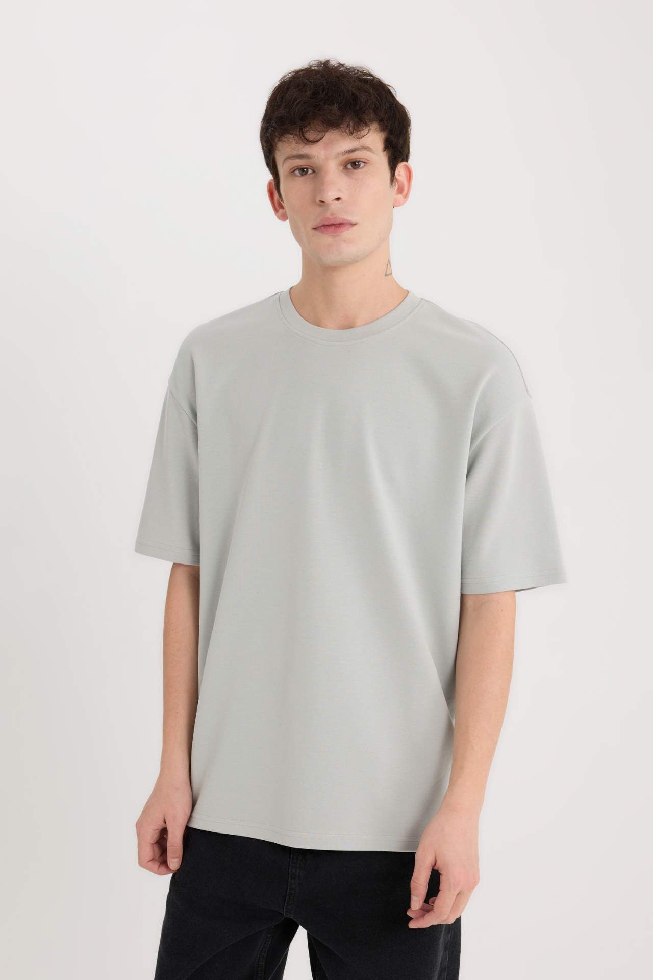 DeFacto Oversize Geniş Kalıp Bisiklet Yaka Kısa Kollu Ağır Kumaş Tişört X3926AZ25SPGN1255