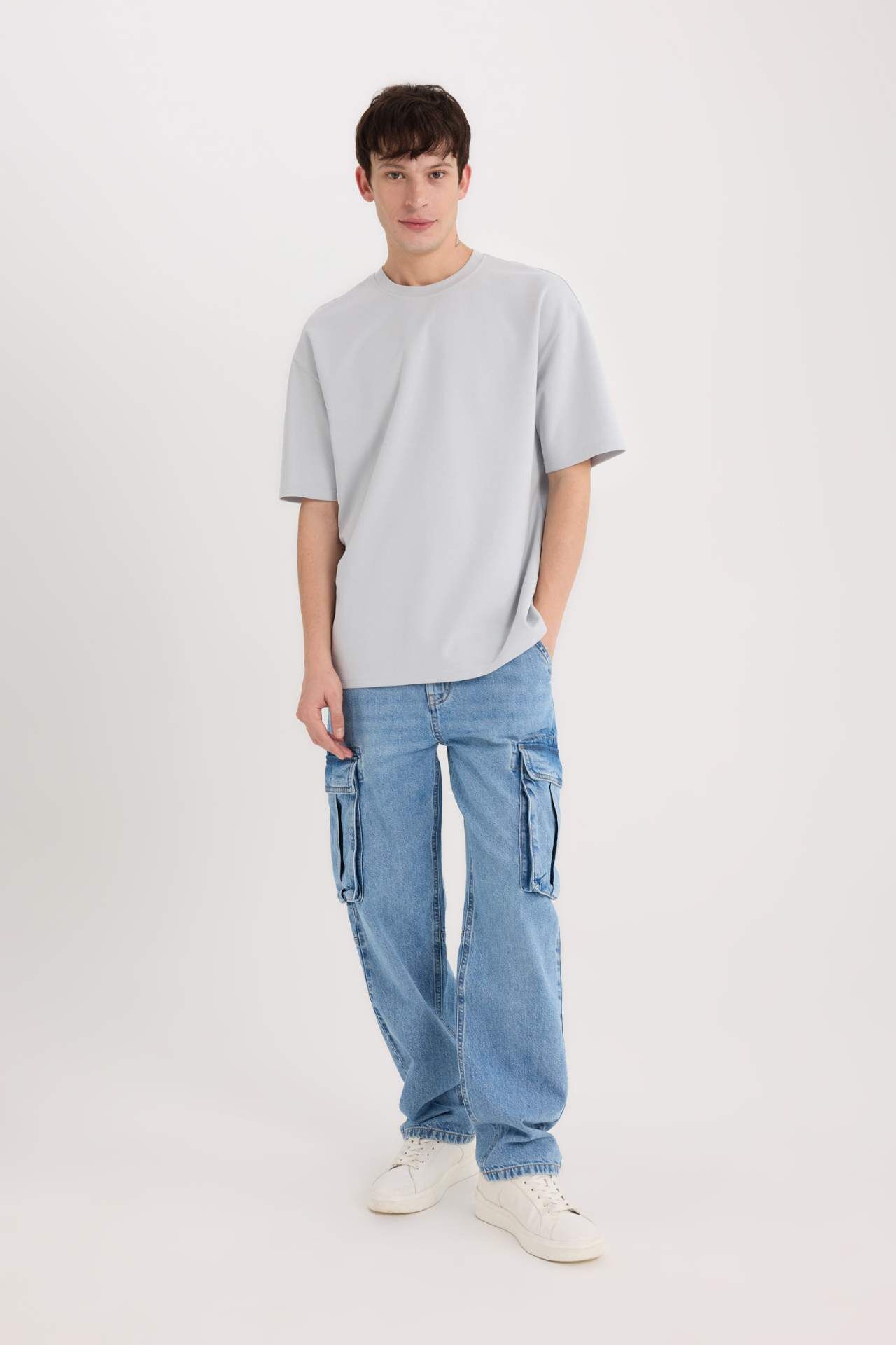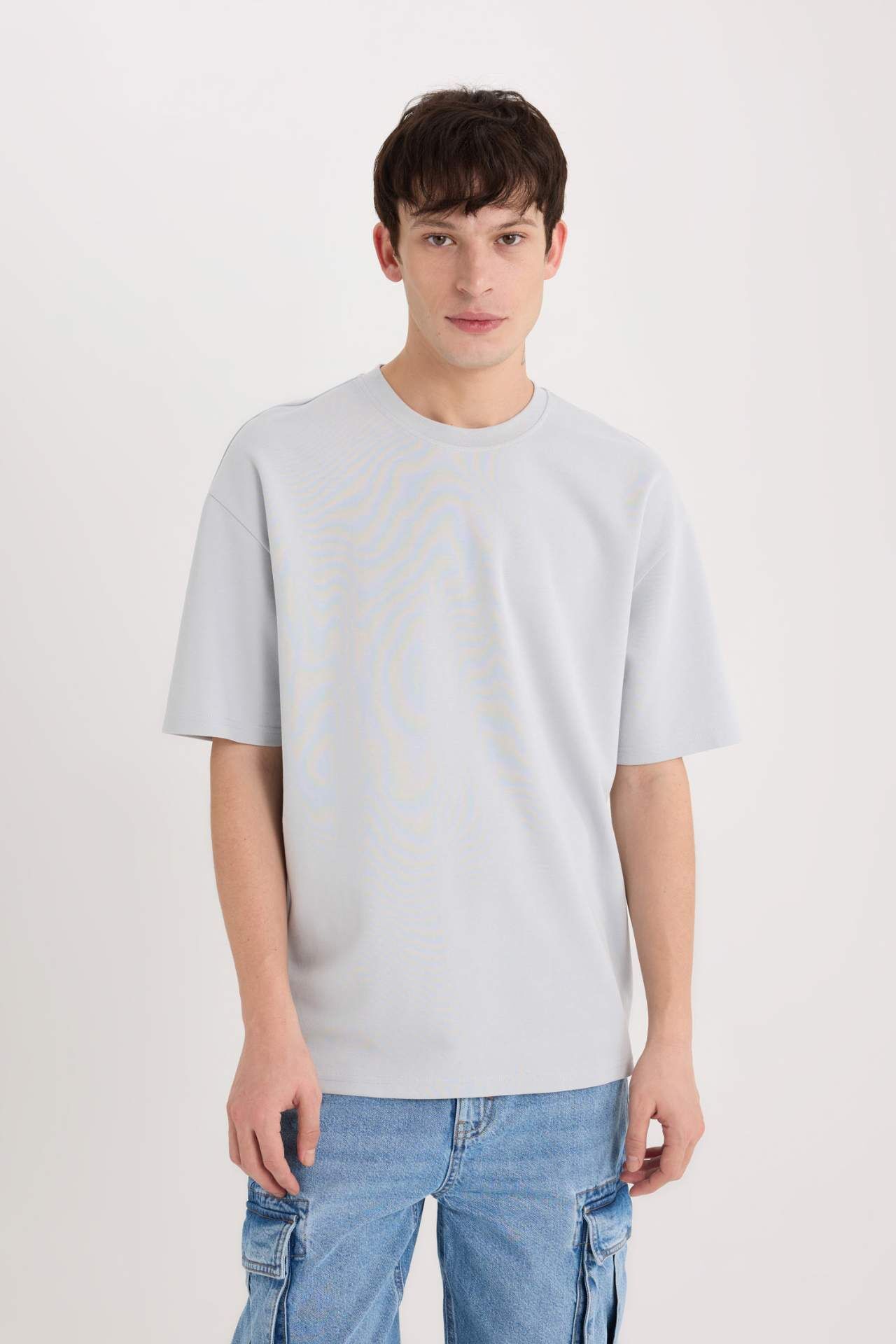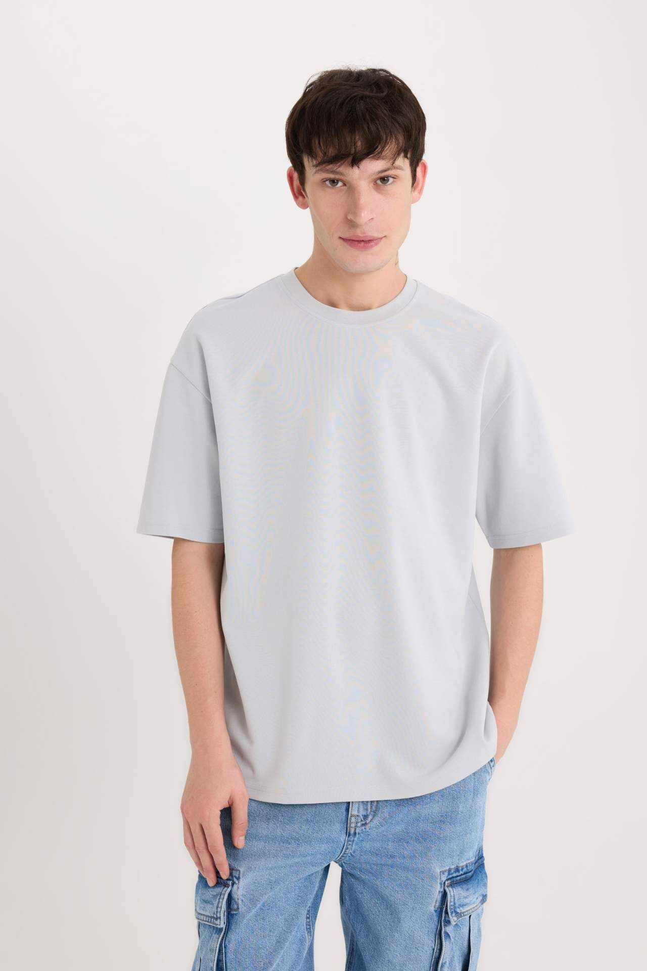 DeFacto Oversize Geniş Kalıp Bisiklet Yaka Kısa Kollu Ağır Kumaş Tişört X3926AZ25SPGR184