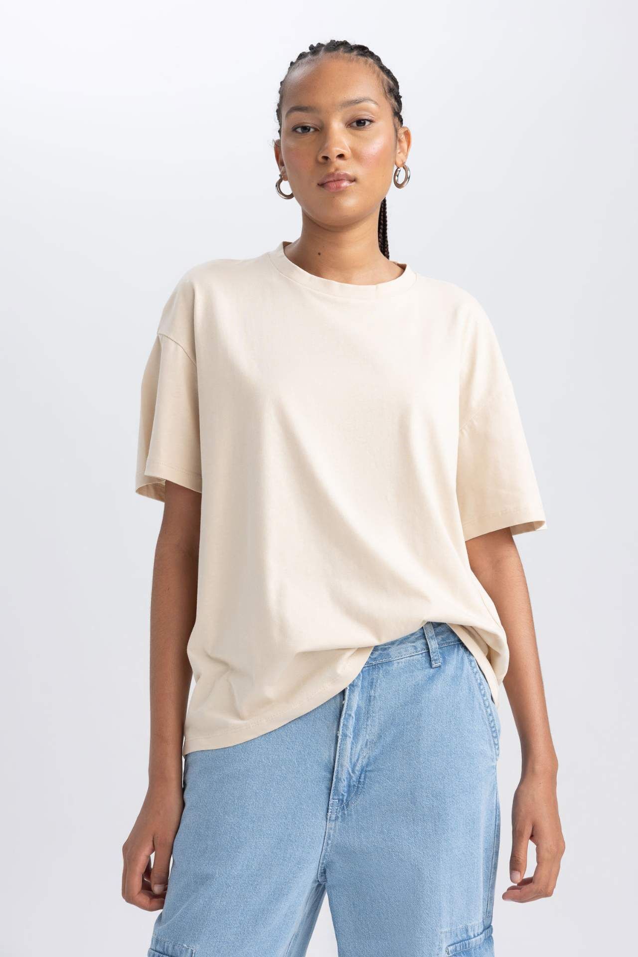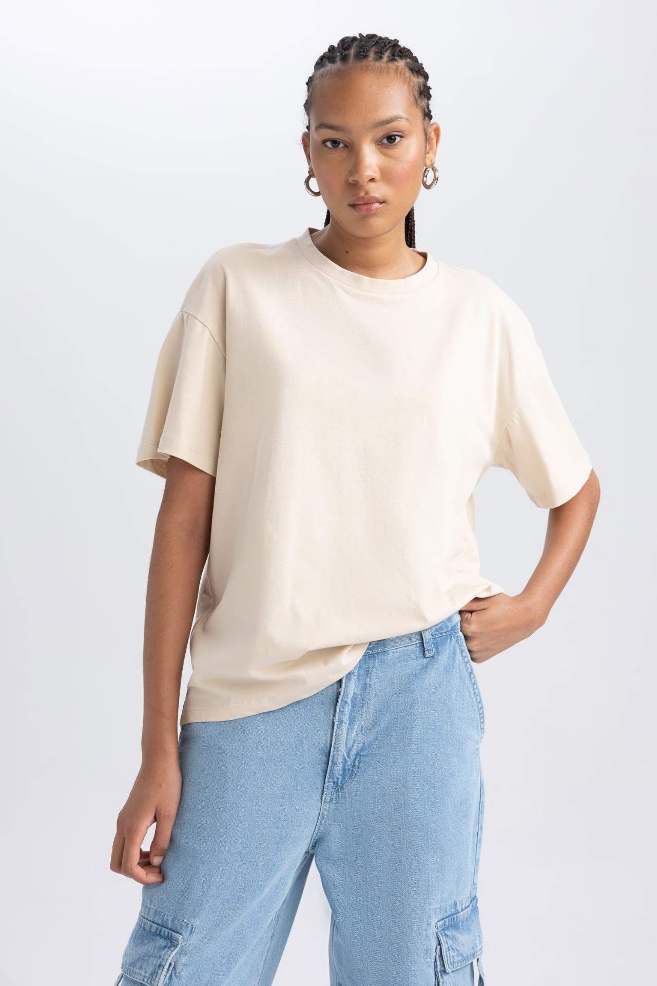 DeFacto Oversize Geniş Kalıp Bisiklet Yaka Kısa Kollu Tişört B0648AXNSBG663