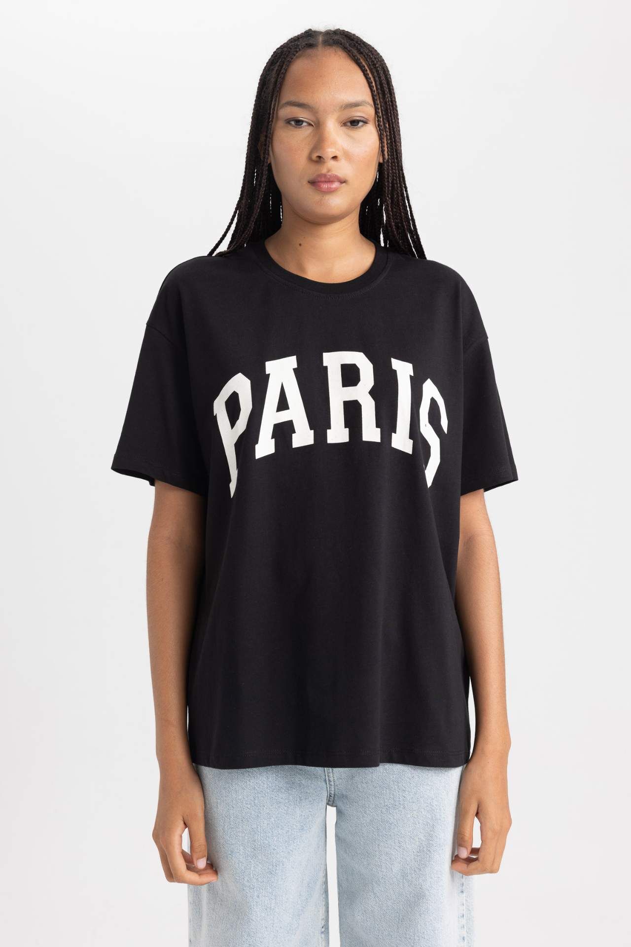 DeFacto Oversize Geniş Kalıp Bisiklet Yaka Kısa Kollu Tişört B0661AXNSBK81