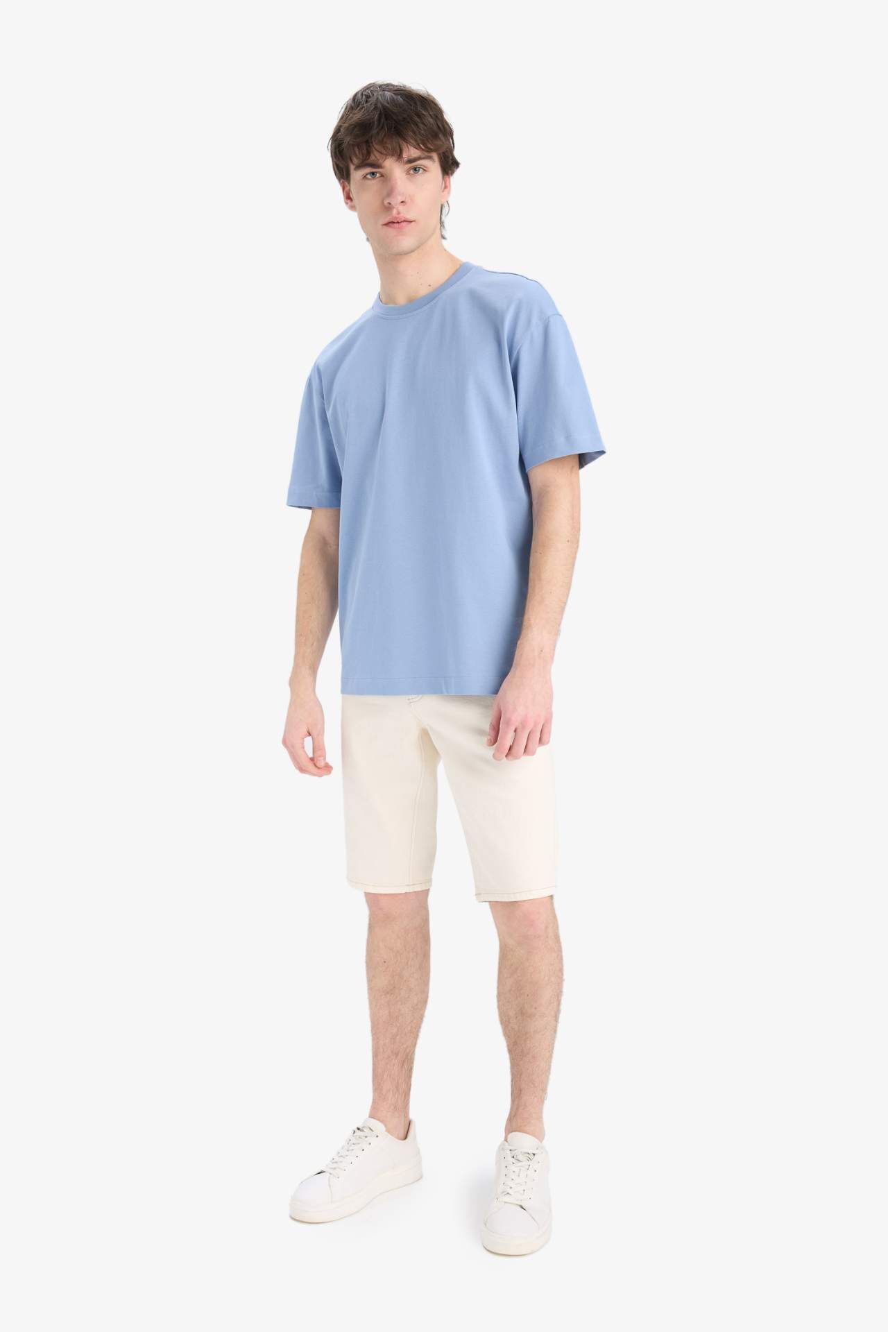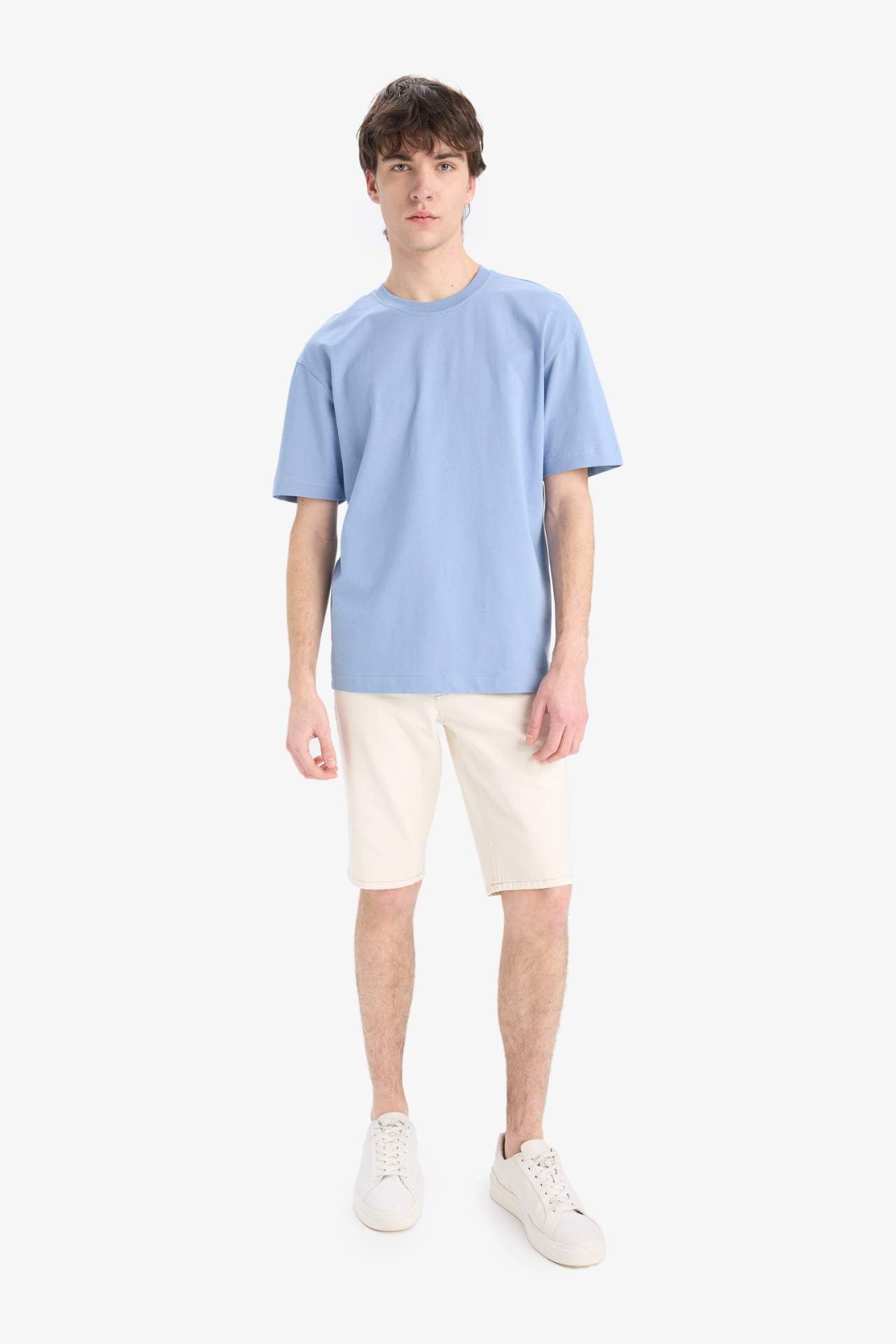 DeFacto Oversize Geniş Kalıp Bisiklet Yaka Kısa Kollu Tişört E6885AXNSBE797